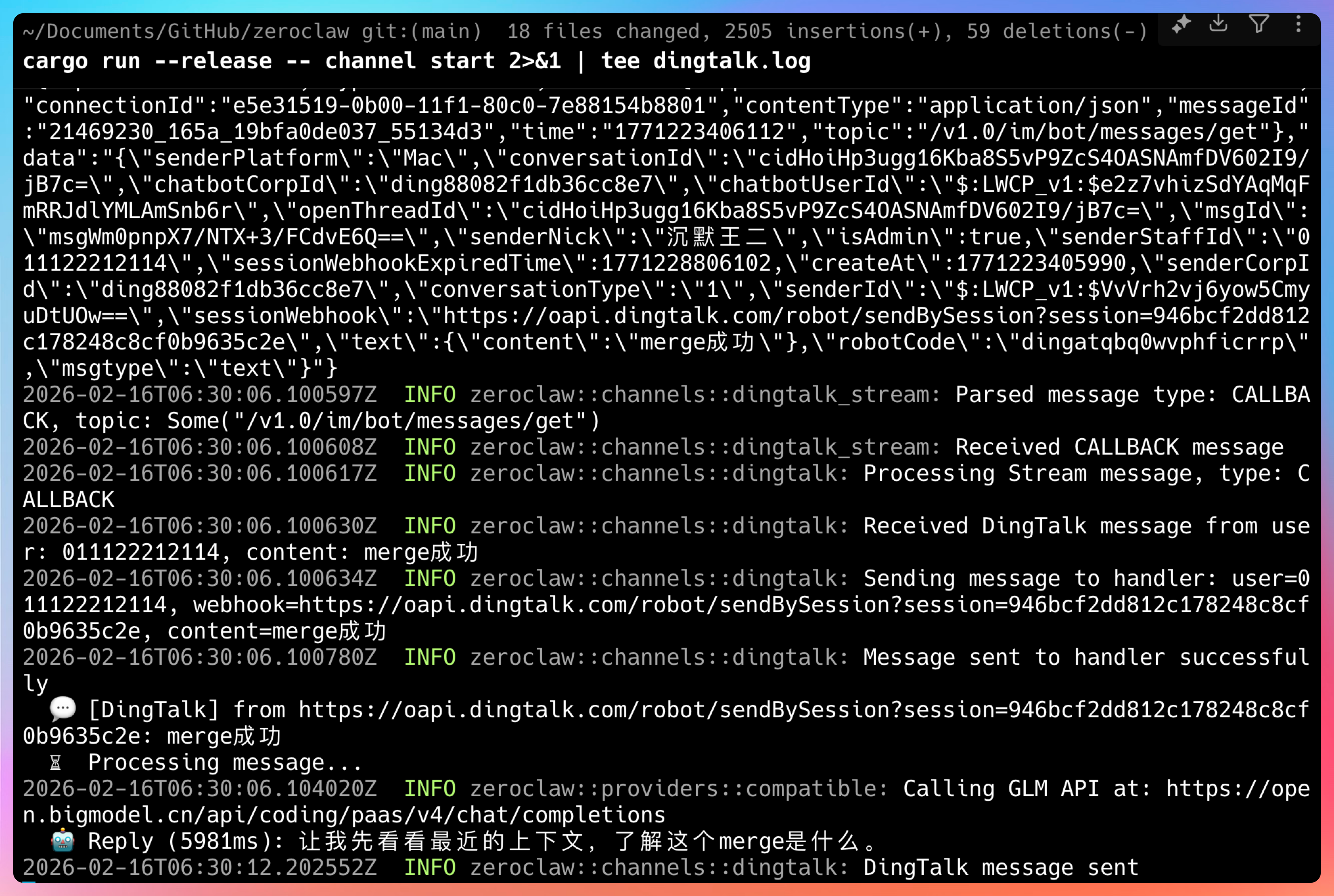 钉钉的 stream 接入实现起来还是比较丝滑的,整体比企业微信友好,鹅厂不管是QQ还是企业微信,都没办法做到本地直接调试,很麻烦。
