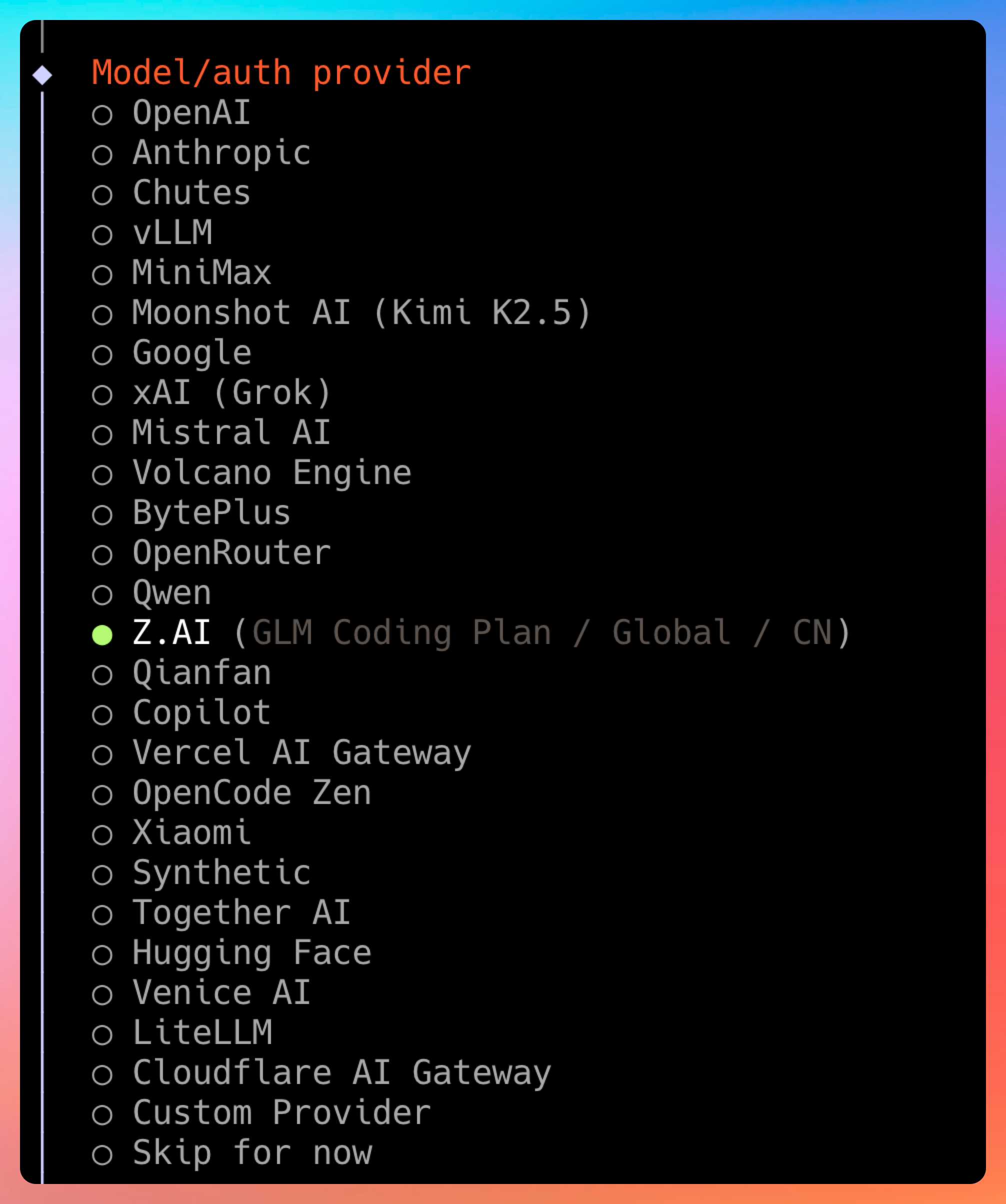 我这里以智谱 GLM 为例,因为我是他们家的 coding plan 套餐用户(非利益关系,纯粹是 OpenClaw 烧 token 太快,只有 plan 套餐才能顶得住)。