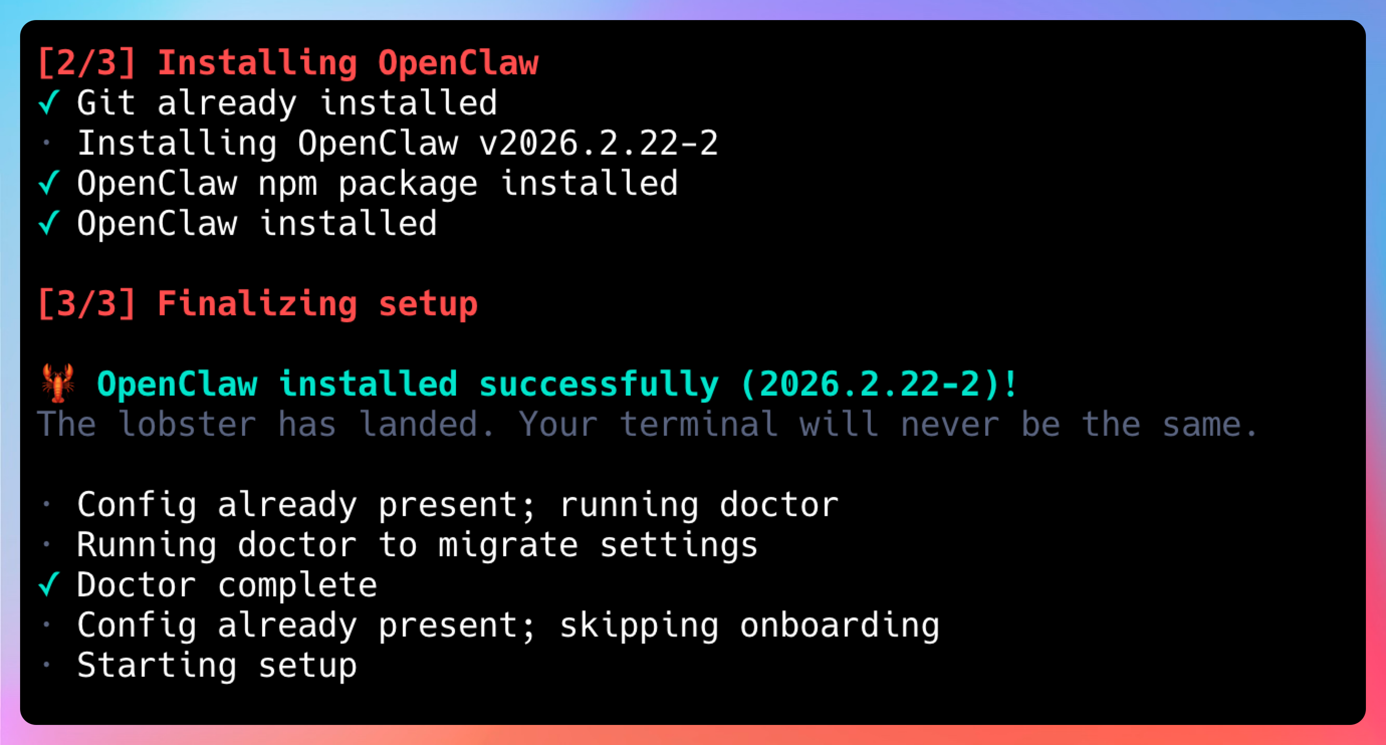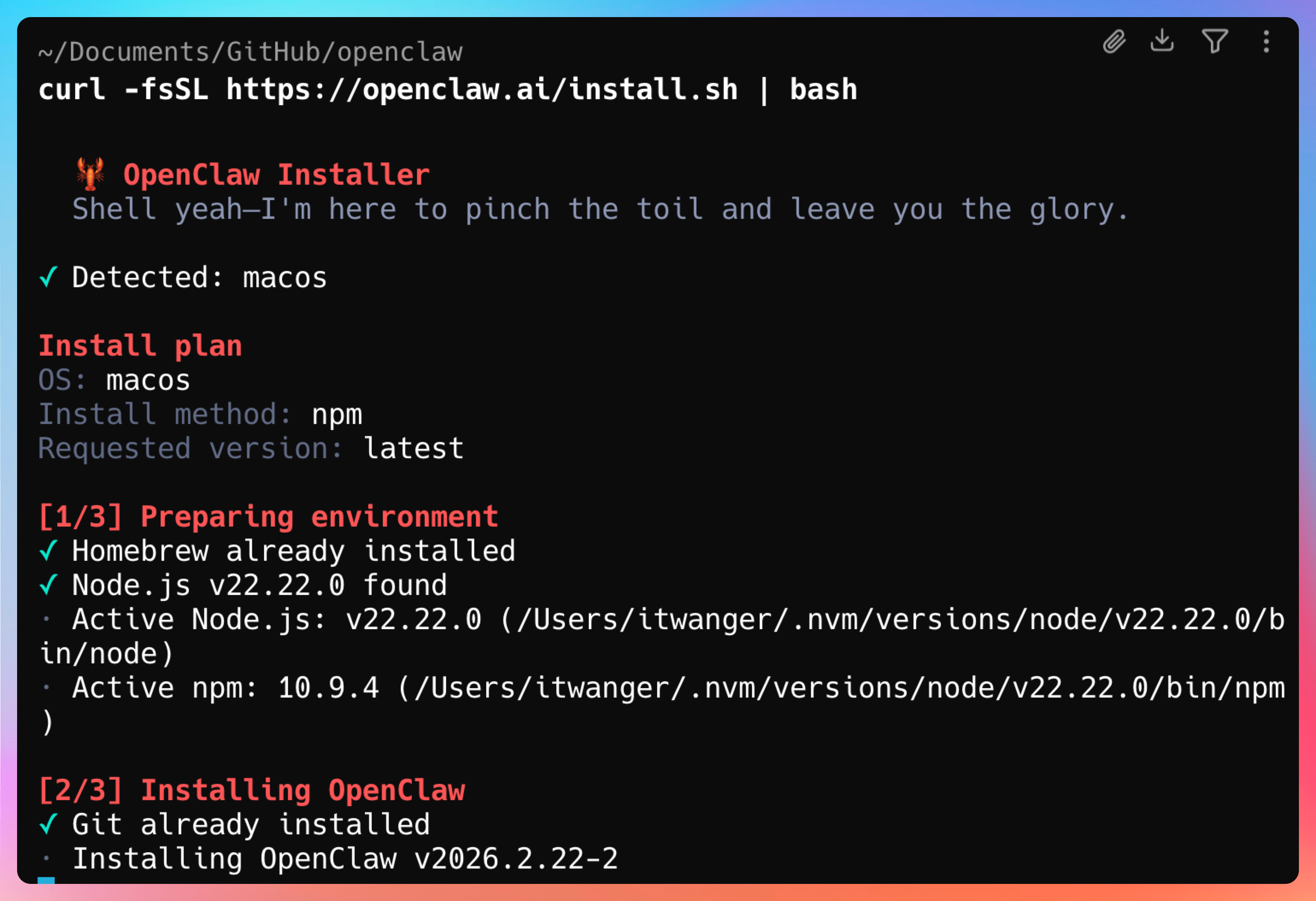 curl -fsSL https://openclaw.ai/install.sh | bash