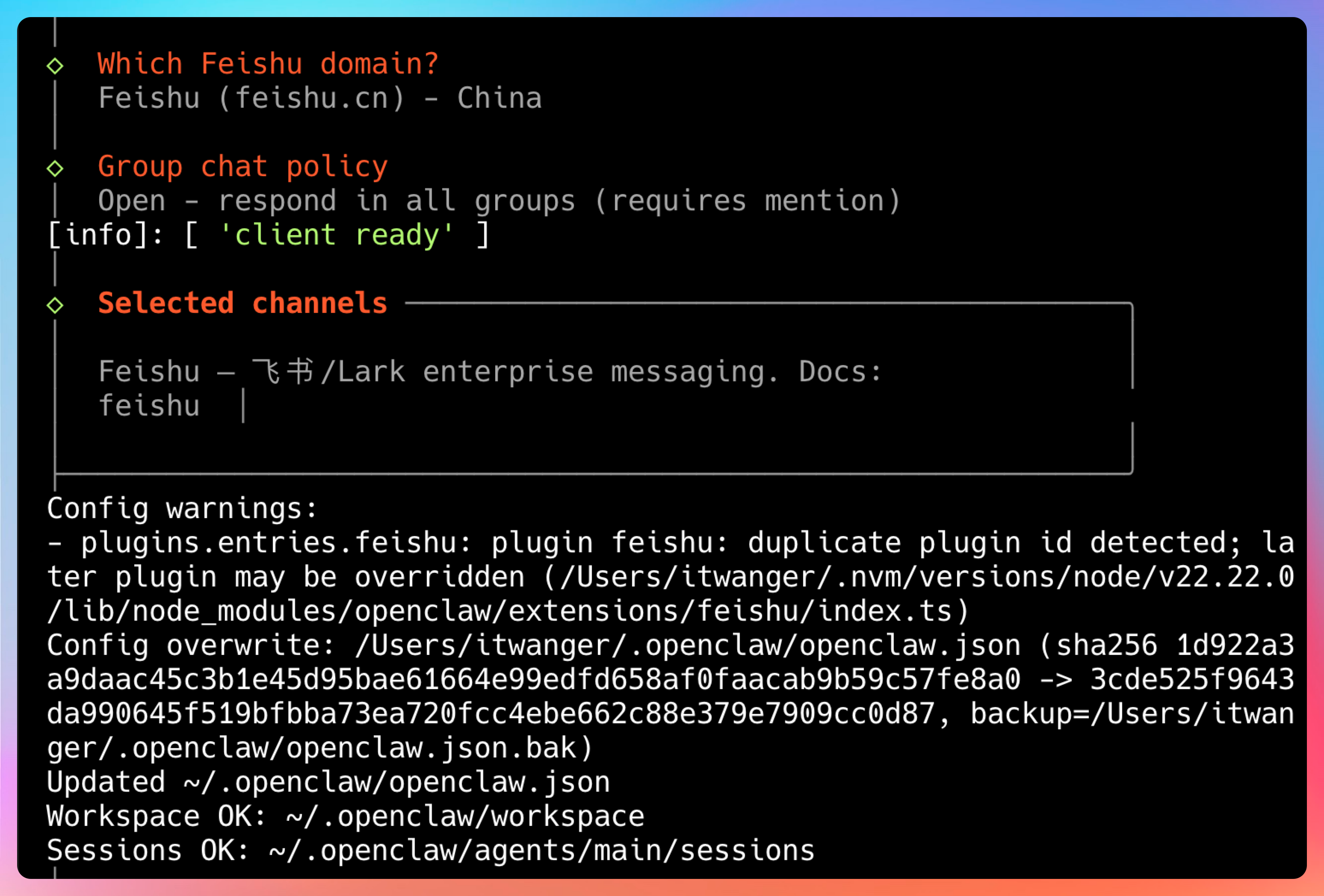 当然了,如果你不想在启动的时候配置飞书,也可以在 OpenClaw 安装成功后接入飞书。