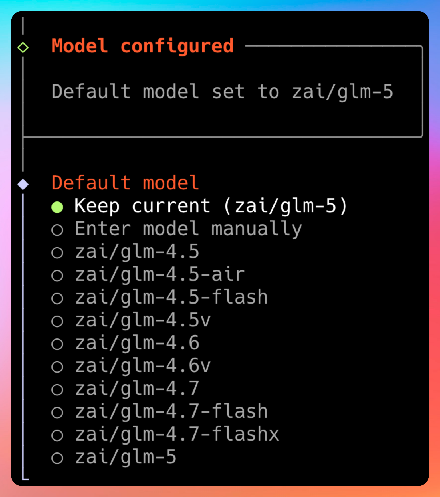 填入 API Key 后,模型保持最新的 GLM-5 就可以了。