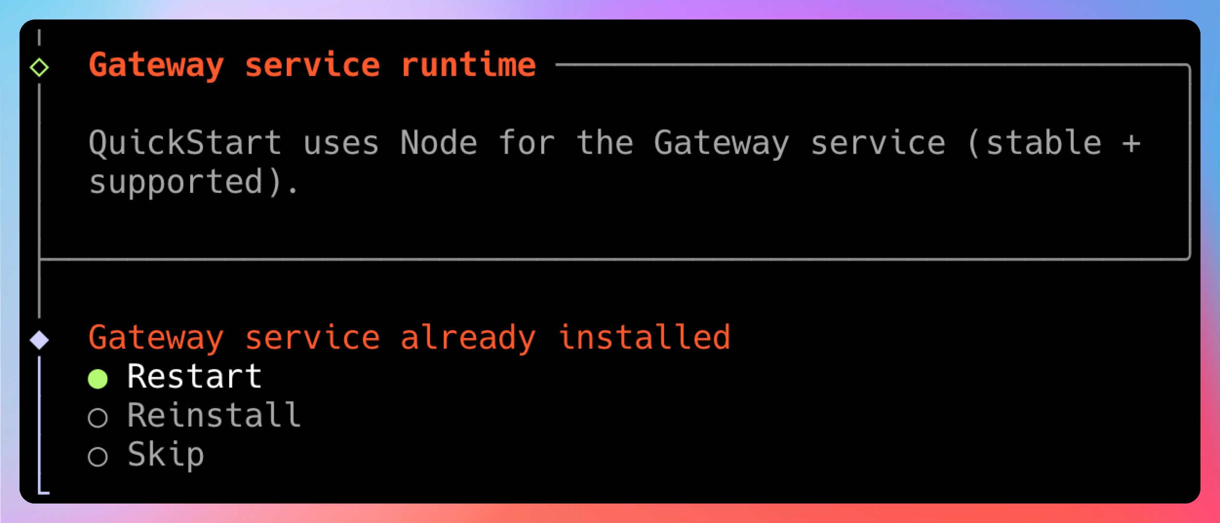接下来是 Gateway 的安装,我之前安装过,为了演示,这里大家可以选择 reinstall。
