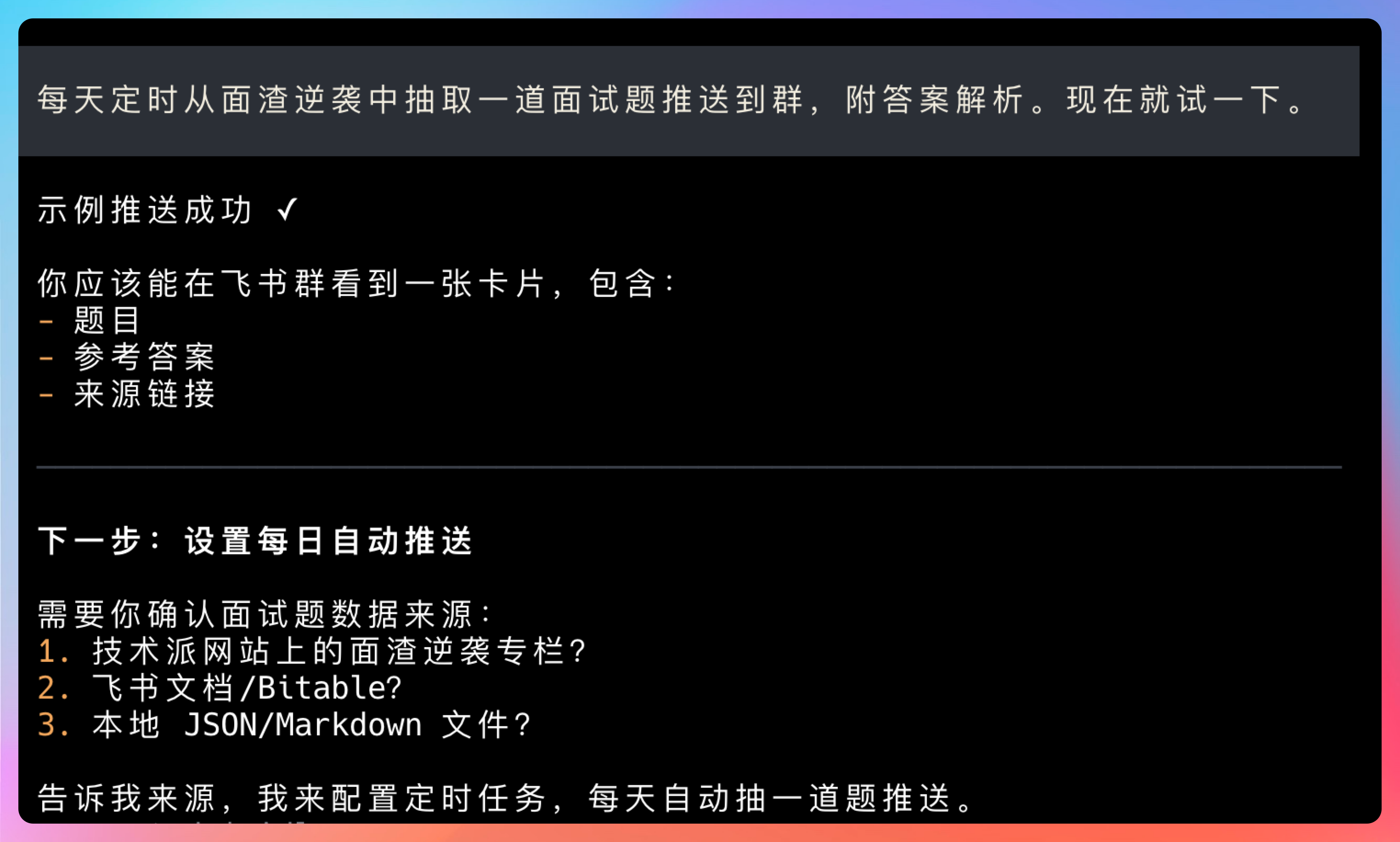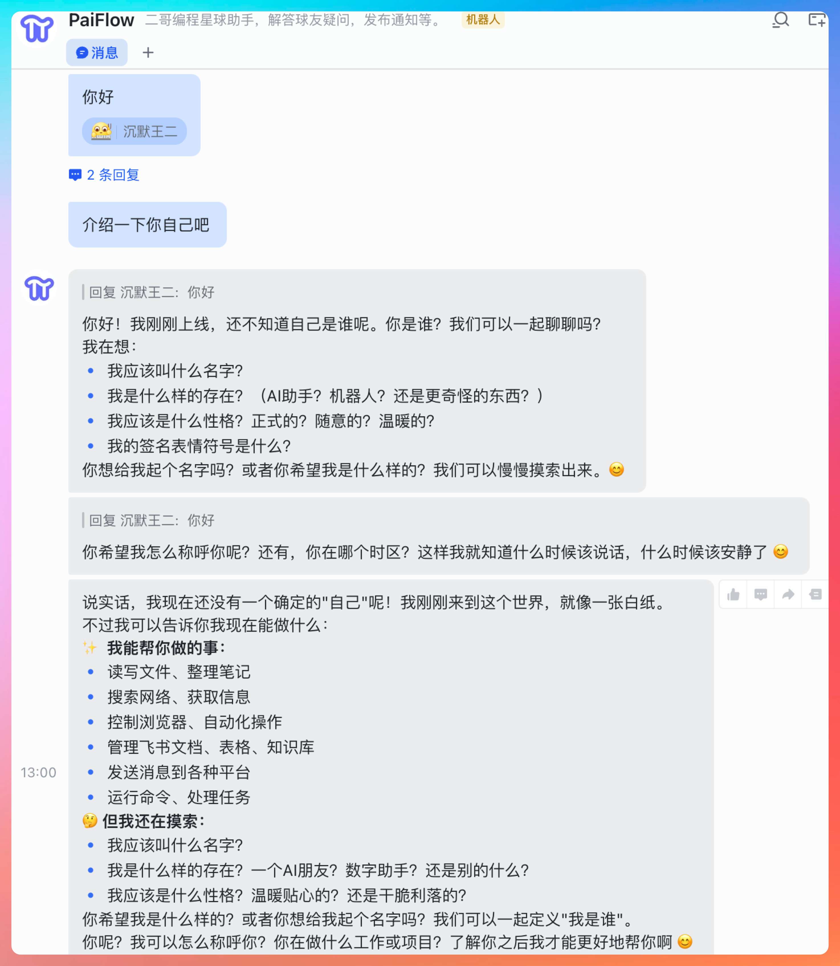 接入飞书之后,它更是变成了一个随时待命的数字员工。