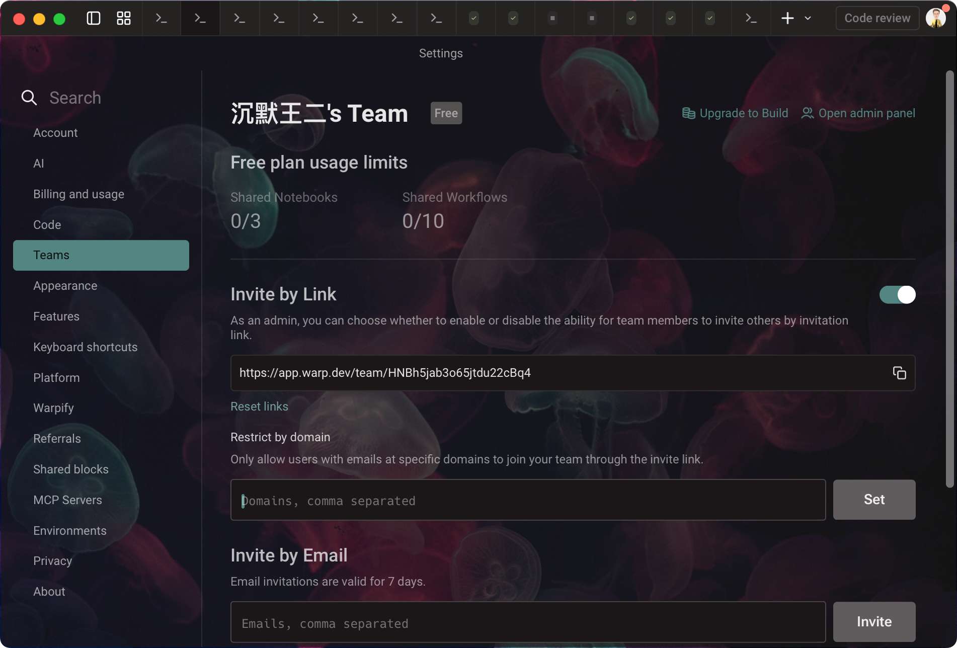 Warp 还支持团队协作,可以把命令和工作流分享给团队成员。