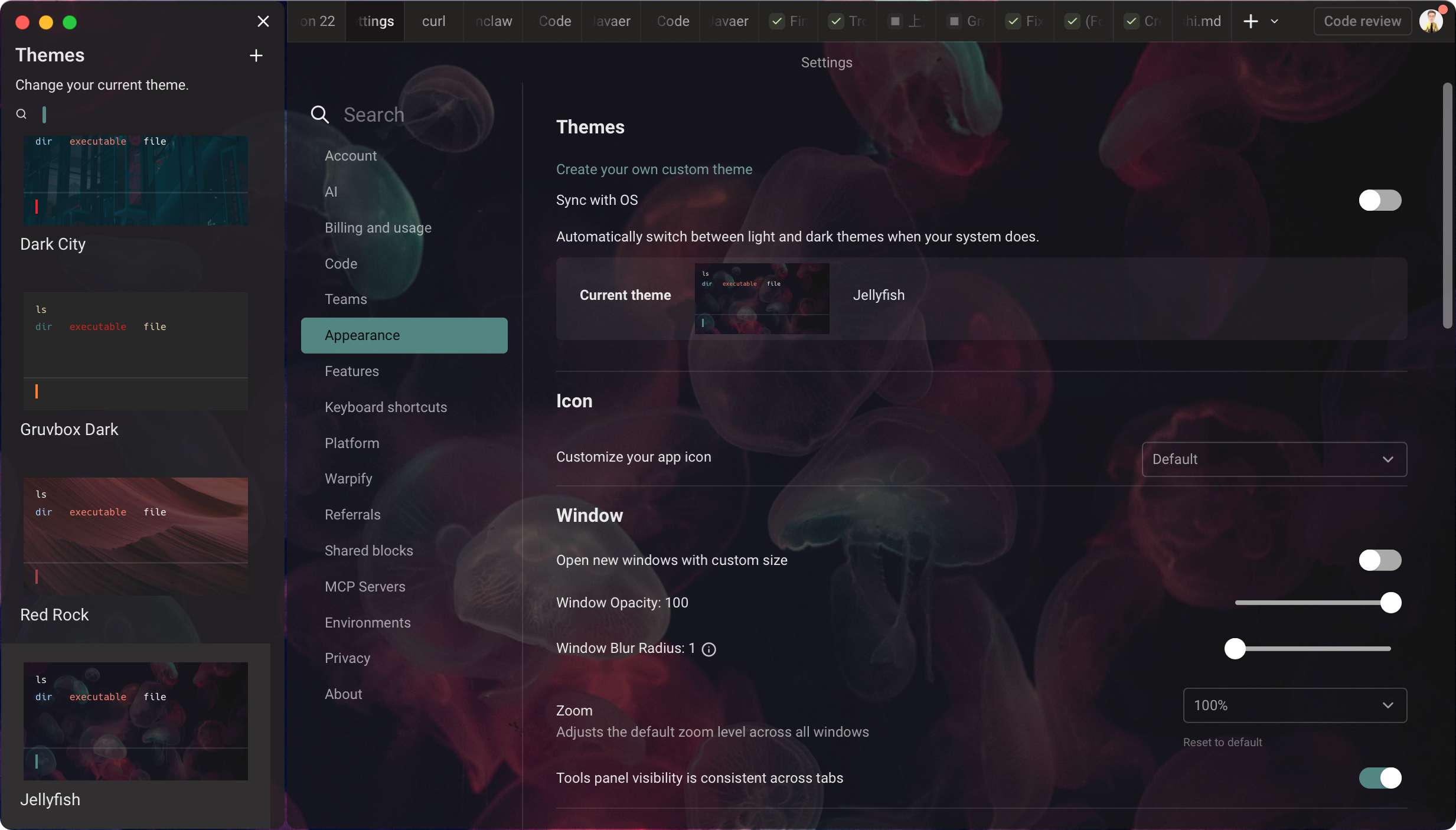 Warp 的 UI 设计非常现代化,有点像 VS Code 的感觉。
