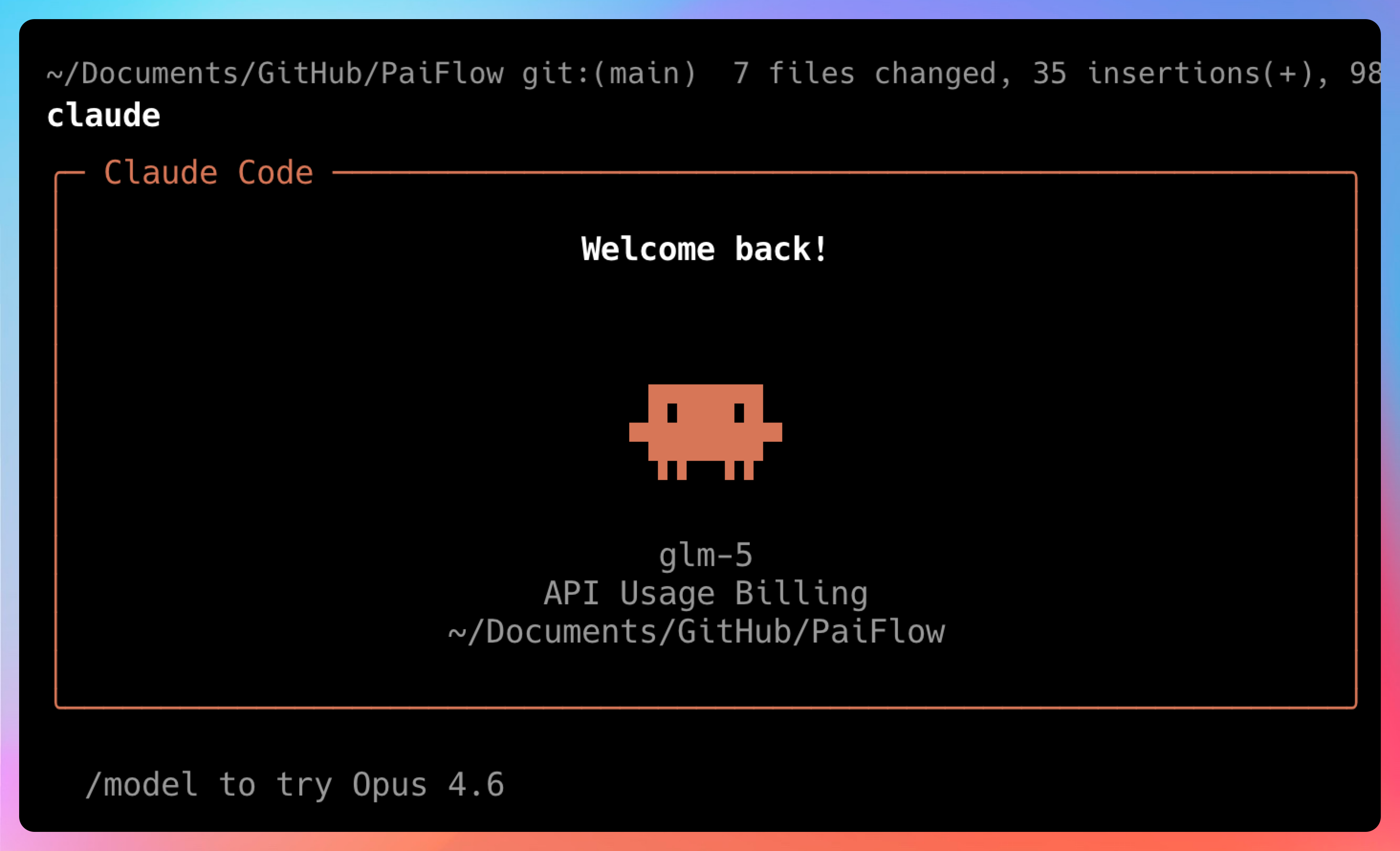 直接键入 claude 进入 Claude Code 就行了,不管背后用的是哪个模型,此时 Warp 就只是 Claude Code 的一个载体而已。
