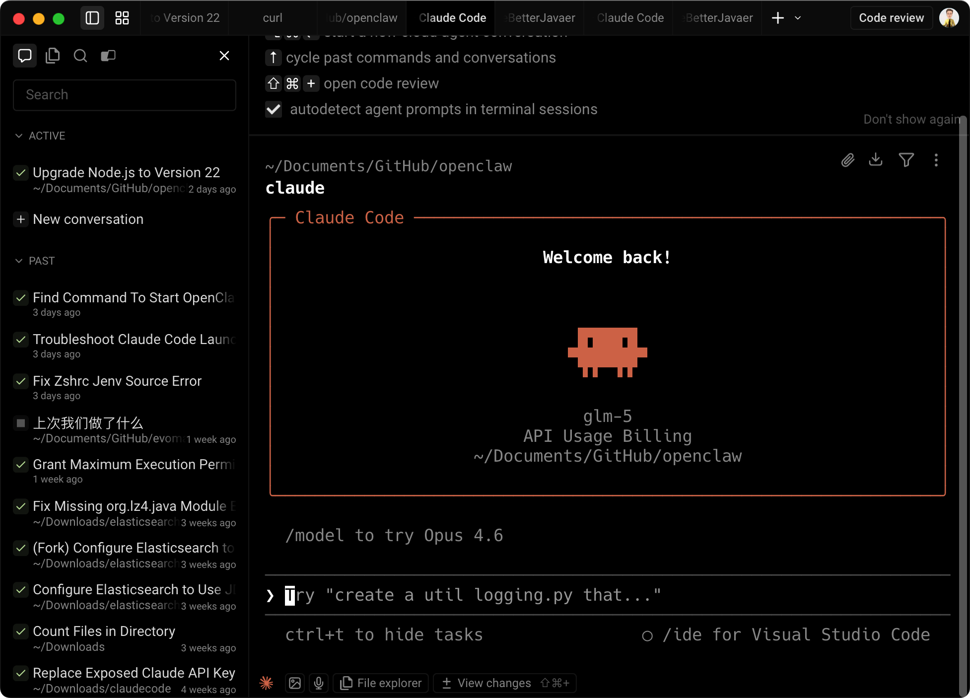 但 Warp 提供了历史记录,你每开一次对话,都会被记录下来。
