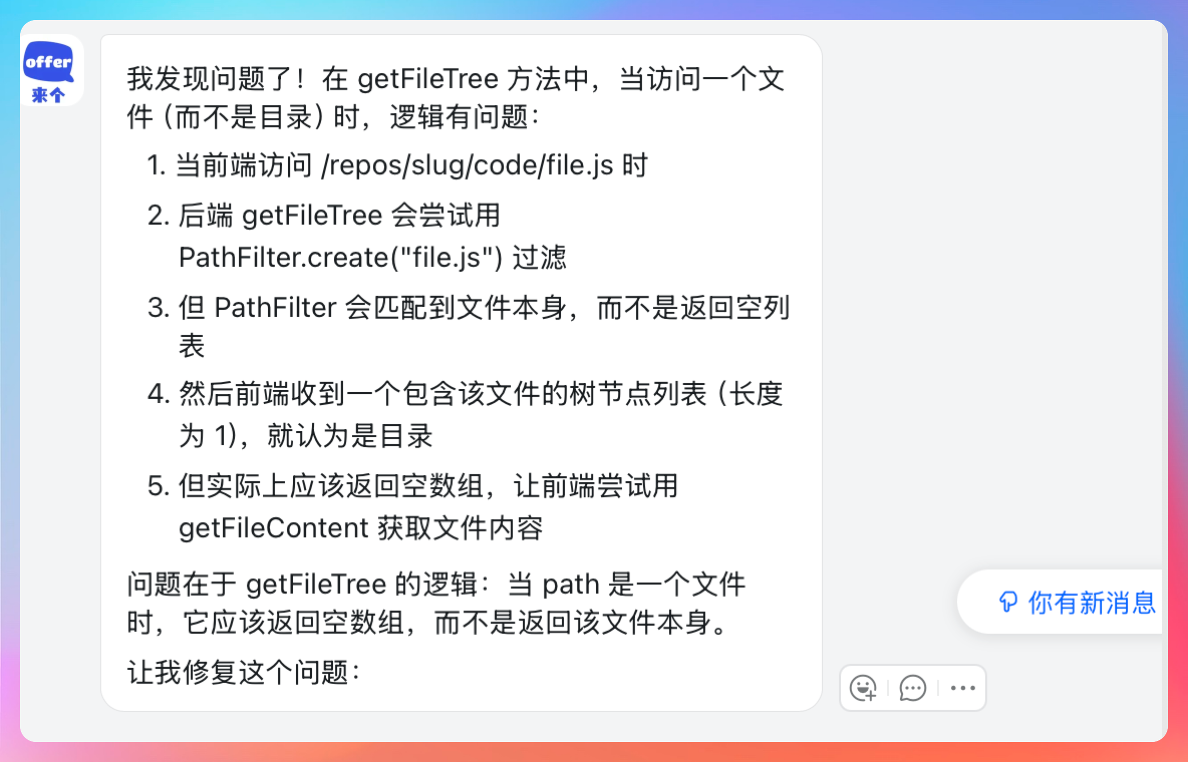OK,发现问题了:在 getFileTree 方法中,当访问一个文件(而不是目录)时,逻辑有问题。
