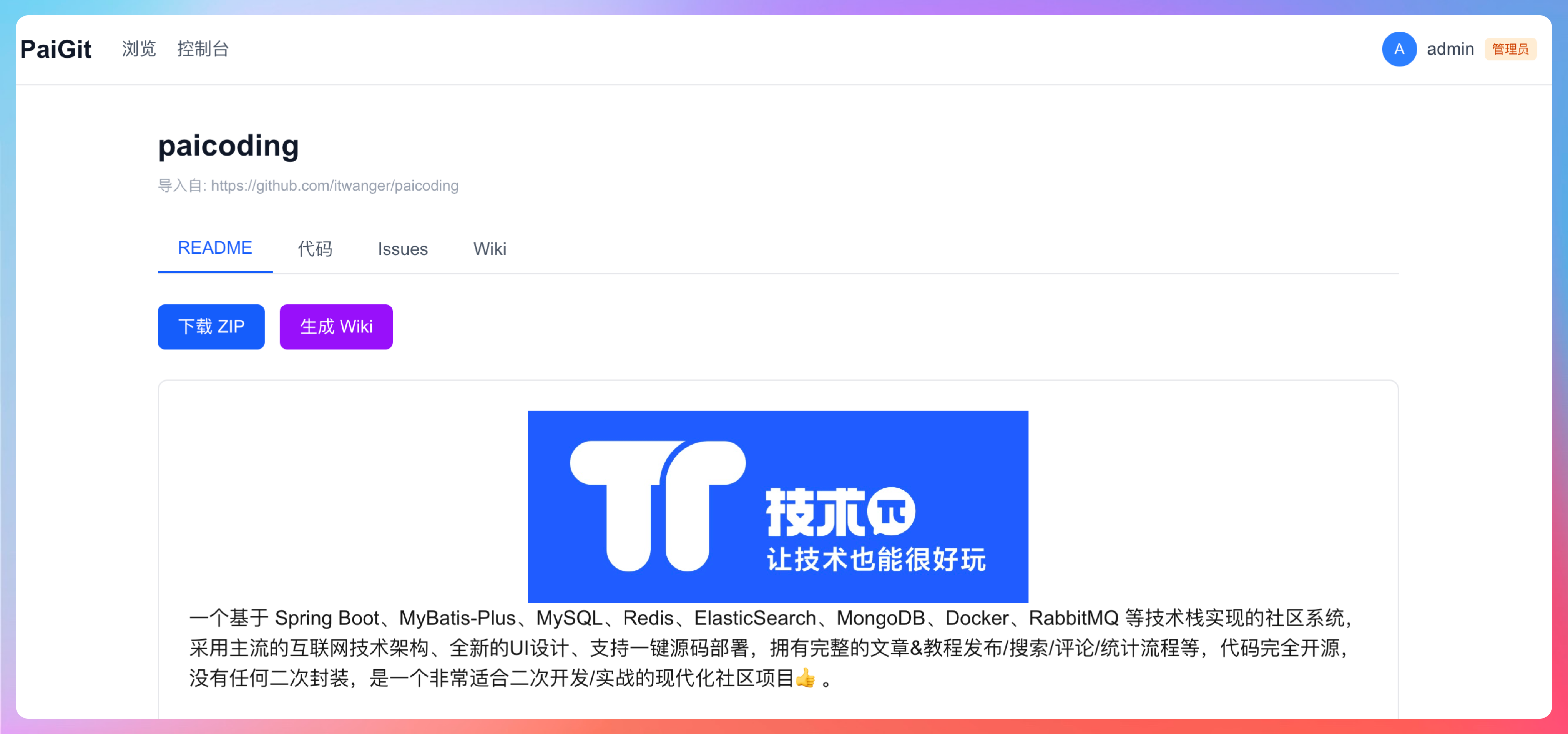 接下来,我会手把手教大家在本地部署,并且用它来完成新开的一个源码管理平台 PaiGit 的项目 readme 优化。