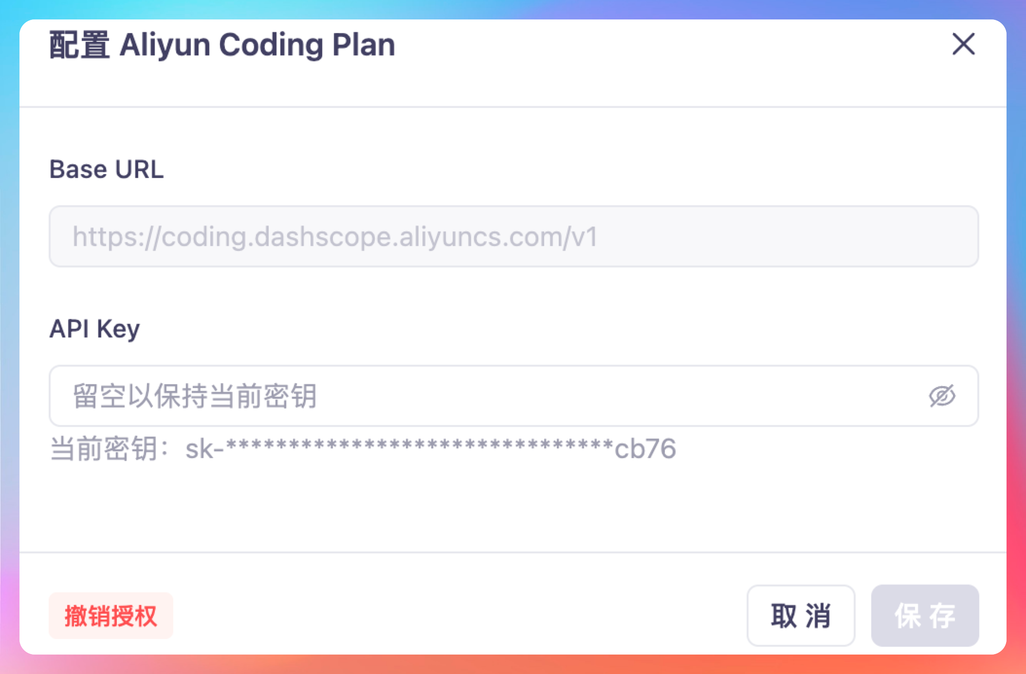 我这次用的是通义千问 Coding Plan,直接在配置文件里填上 API Key 就行了。
