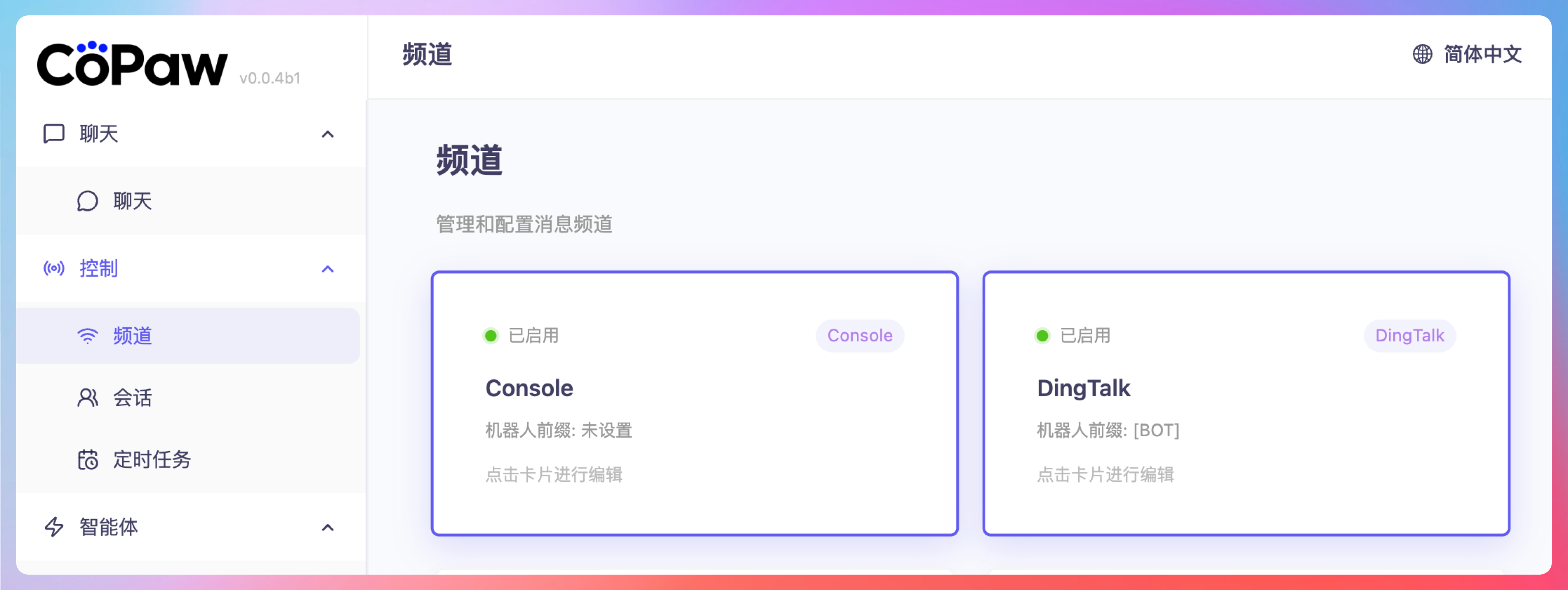 2. 配置 CoPaw 钉钉频道