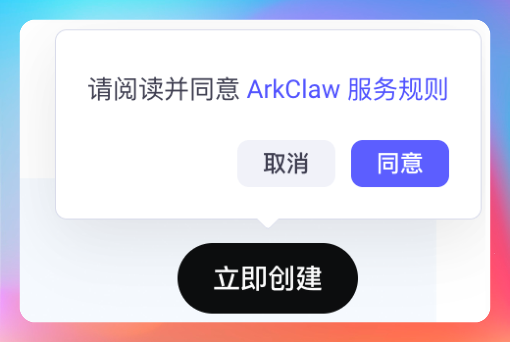 ArkClaw 你只需要:点击【立即创建】就可以了。