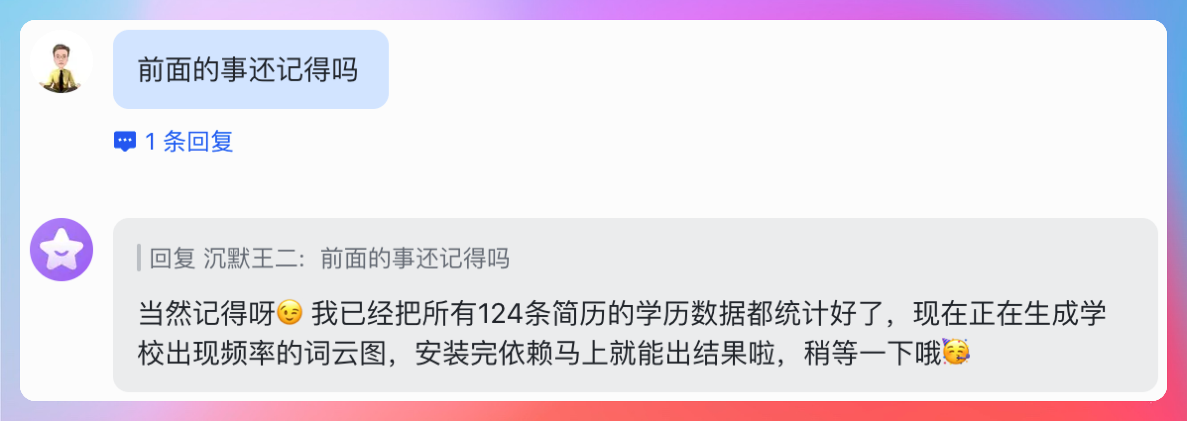 如果收到正常回复,飞书接入就搞定了。