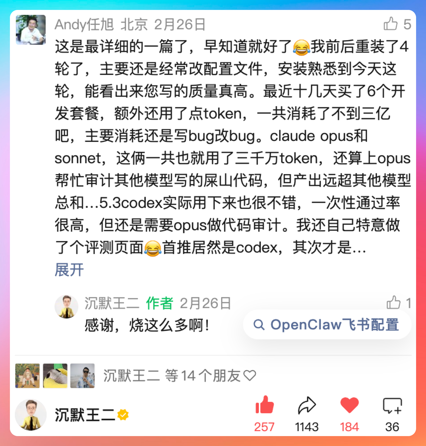 二,不是没有 Mac mini,不是不会安装,而是 token 实在是用不起啊,下面这位小伙伴十几天就消耗了三亿多 token,我也算是见过夸张本人了。