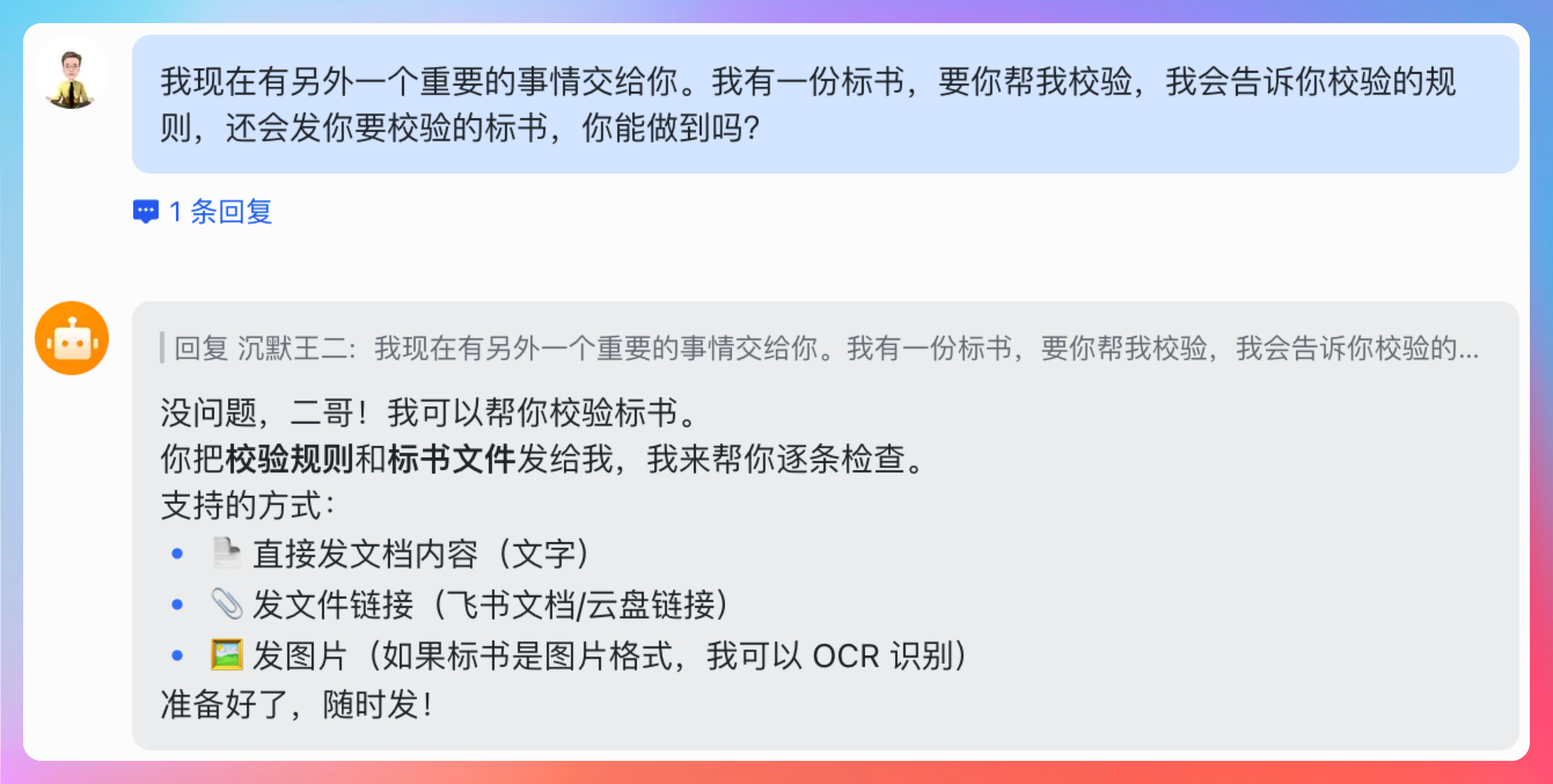 提示词:我现在有另外一个重要的事情交给你。我有一份标书,要你帮我校验,我会告诉你校验的规则,还会发你要校验的标书,你能做到吗?