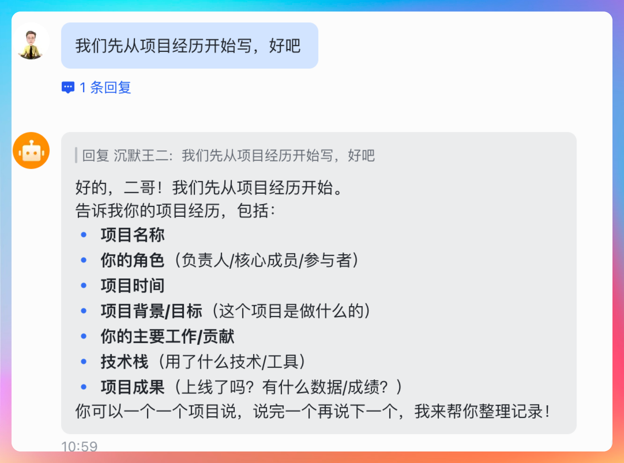 提示词:我们先从项目经历开始写,好吧