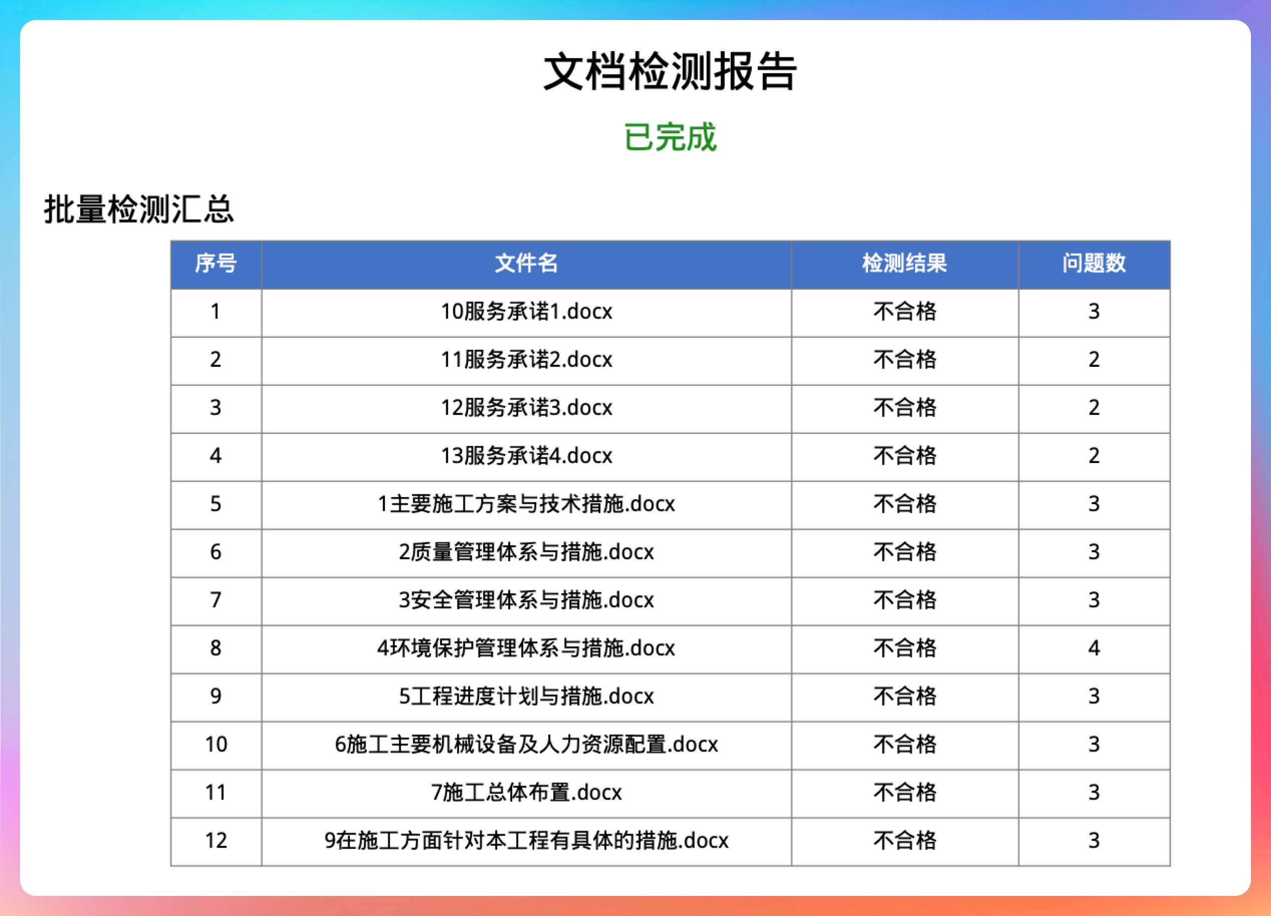 然后把不合格的条目一一都列了出来,还有修改建议,非常贴心。