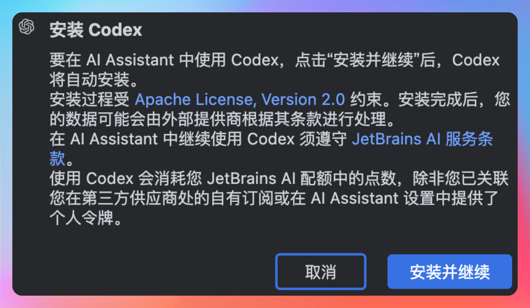 如果已经安装,就可以直接将 Codex 作为 JetBrains AI 订阅的一部分使用。