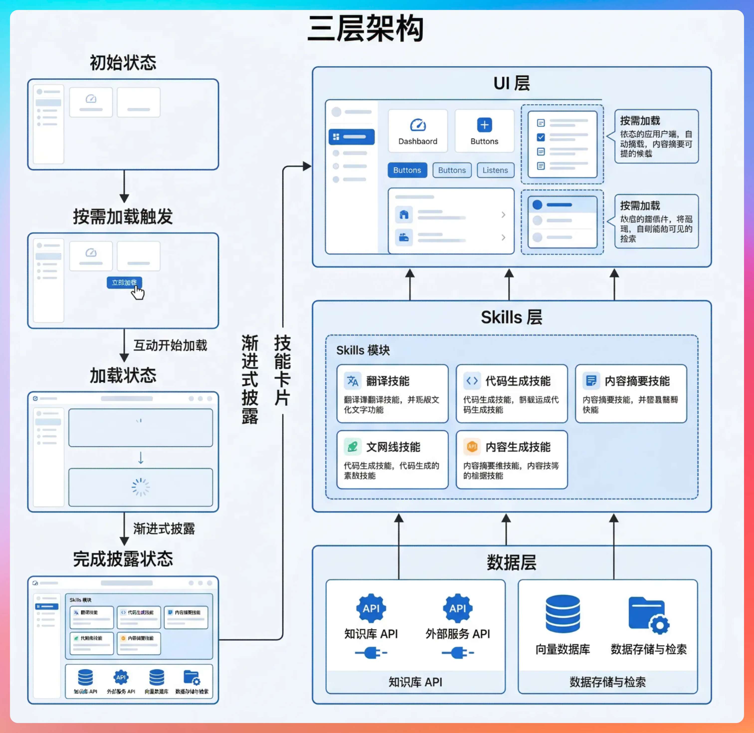 所以 Skills 采用了一种叫“渐进式披露”的架构。