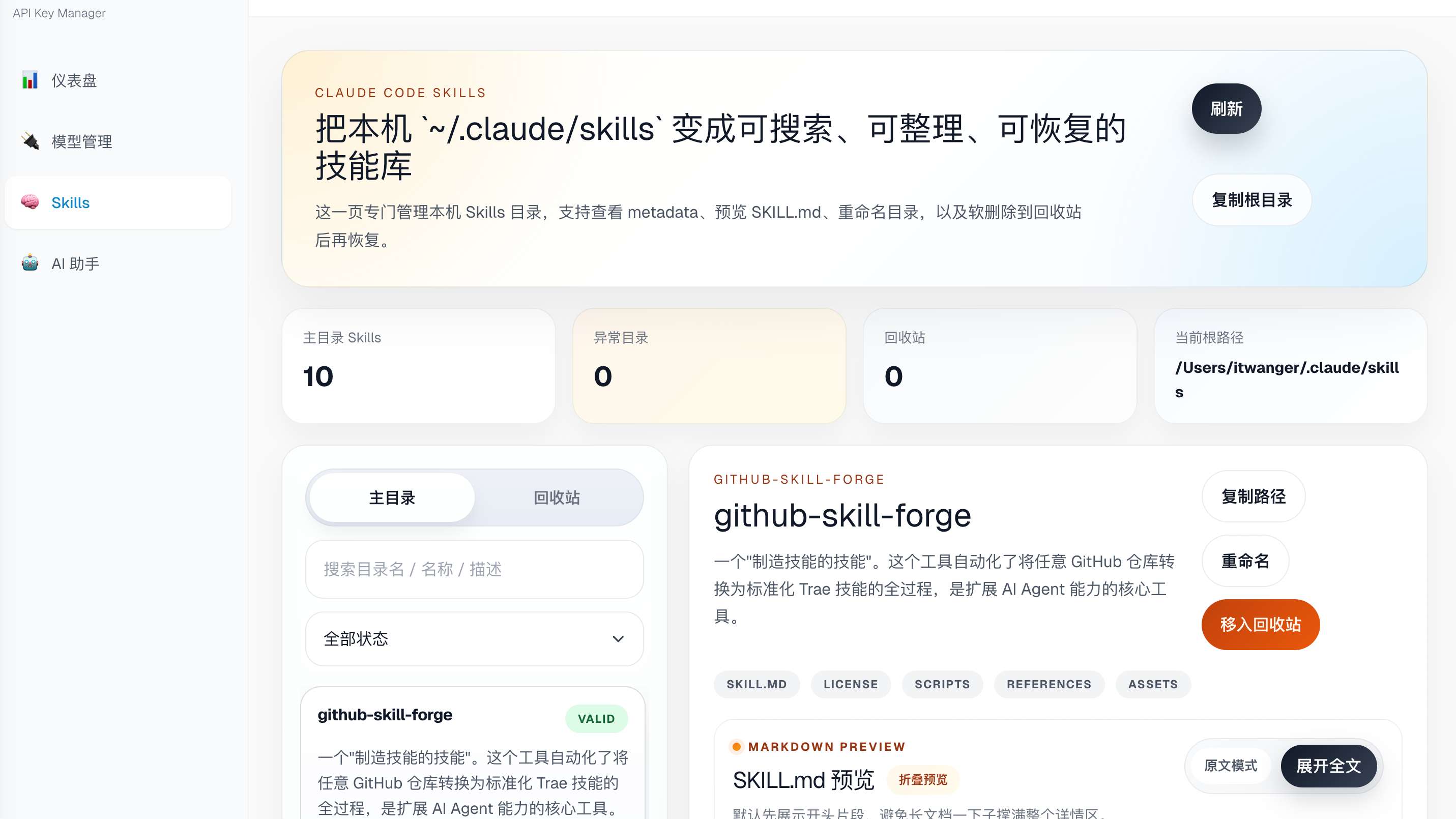 用 Skills 的方式,变成了把这套审查逻辑封装成一个 Skill。下次直接说“用 code-review Skill”,AI 就知道要做什么、怎么做、做到什么程度。