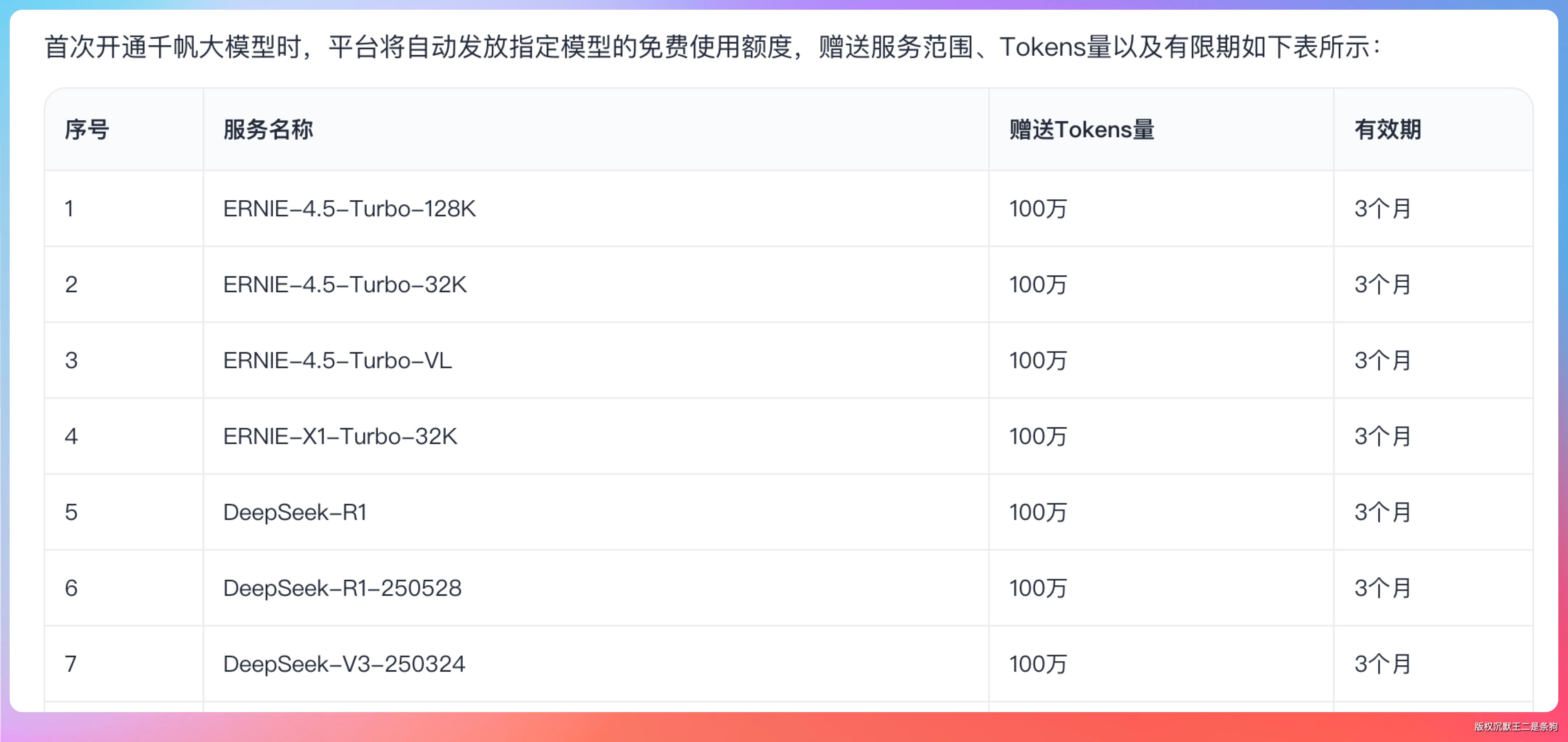 阿里百炼的策略是每个模型单独送,新用户每个模型首次开通就送。百炼上模型多——Qwen、DeepSeek、Kimi 系列都有,累计下来总额不算少。做 RAG 或者 Agent 应用开发的话,百炼的工具链比较完善。