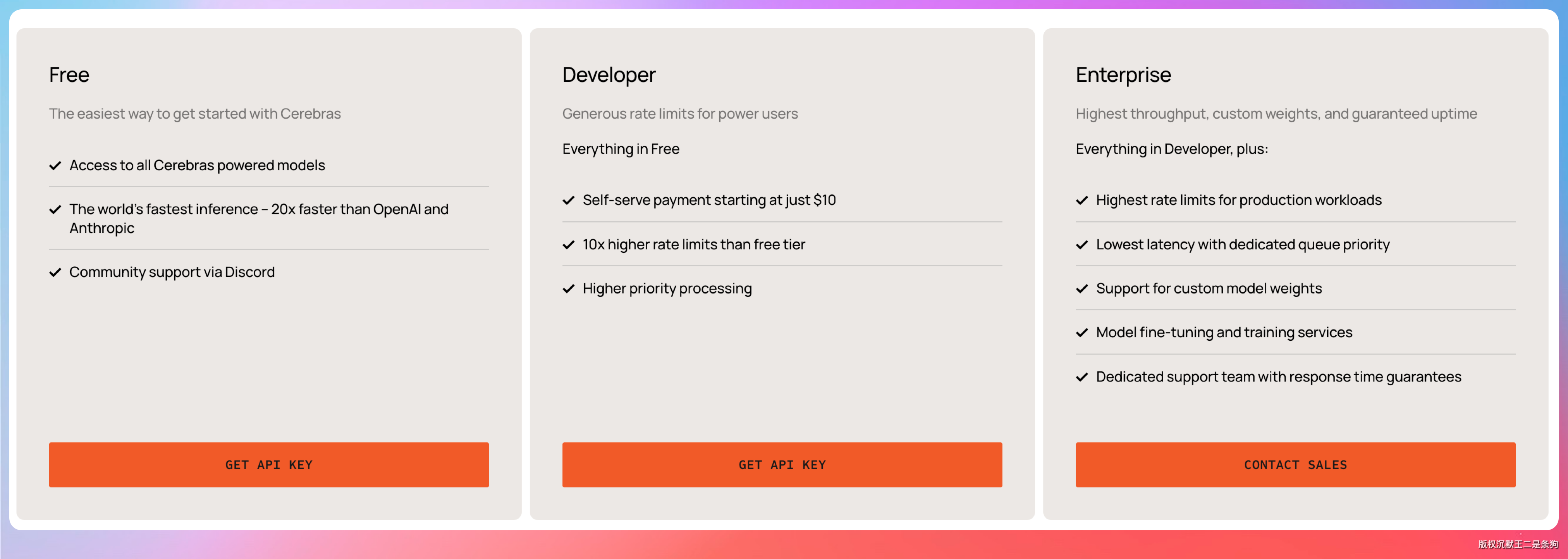 Cerebras 是我比较推荐的国外免费平台。Cerebras 的特色是推理速度极快——它家的专用芯片 WSE-3 单芯片就有 4 万亿个晶体管,推理速度是 GPU 方案的几倍。免费薅到这种速度,真的赚到了。