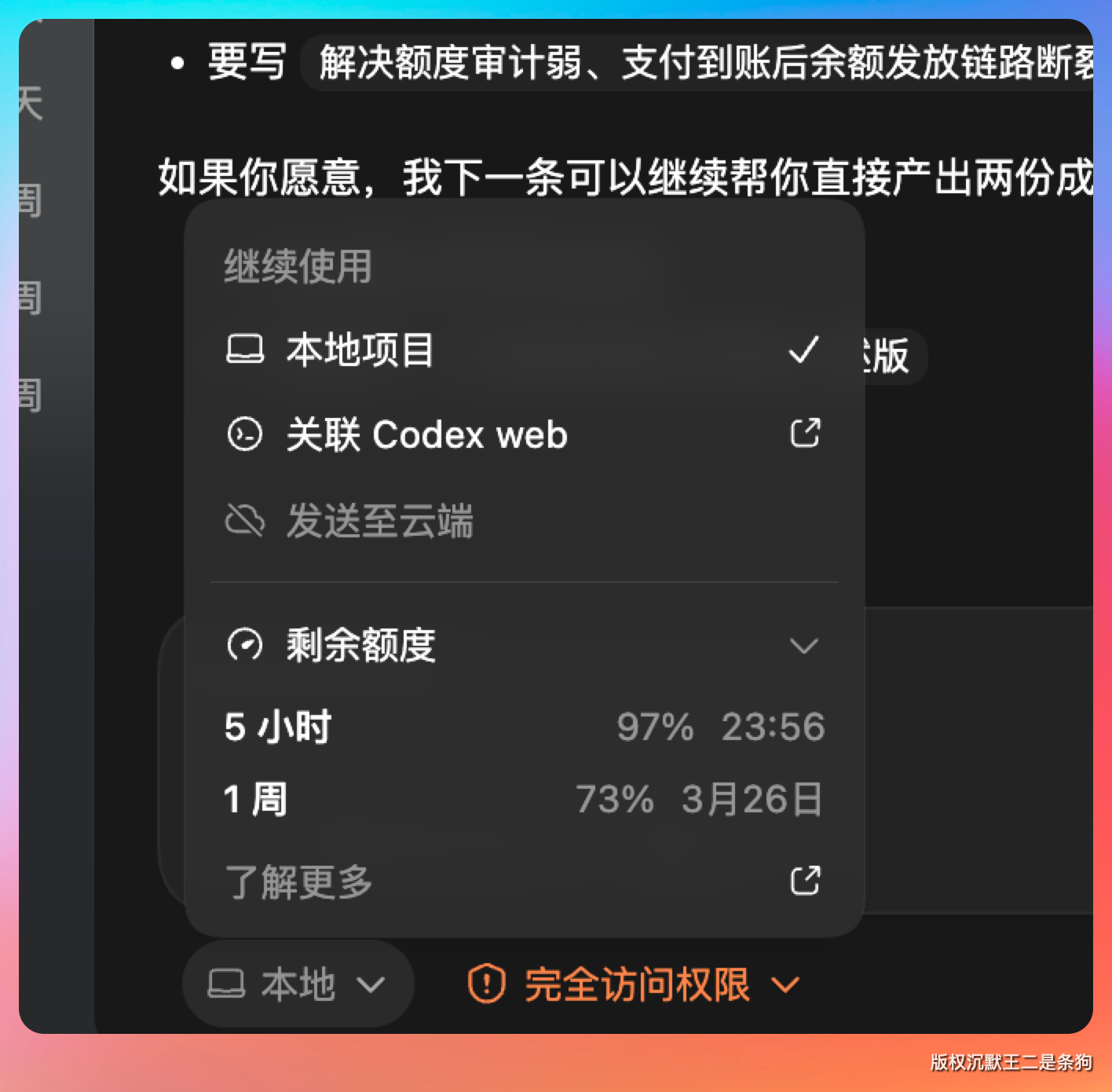 就我这种高强度,两天 Codex 的 pro 额度也就用了不到一周的 30%。