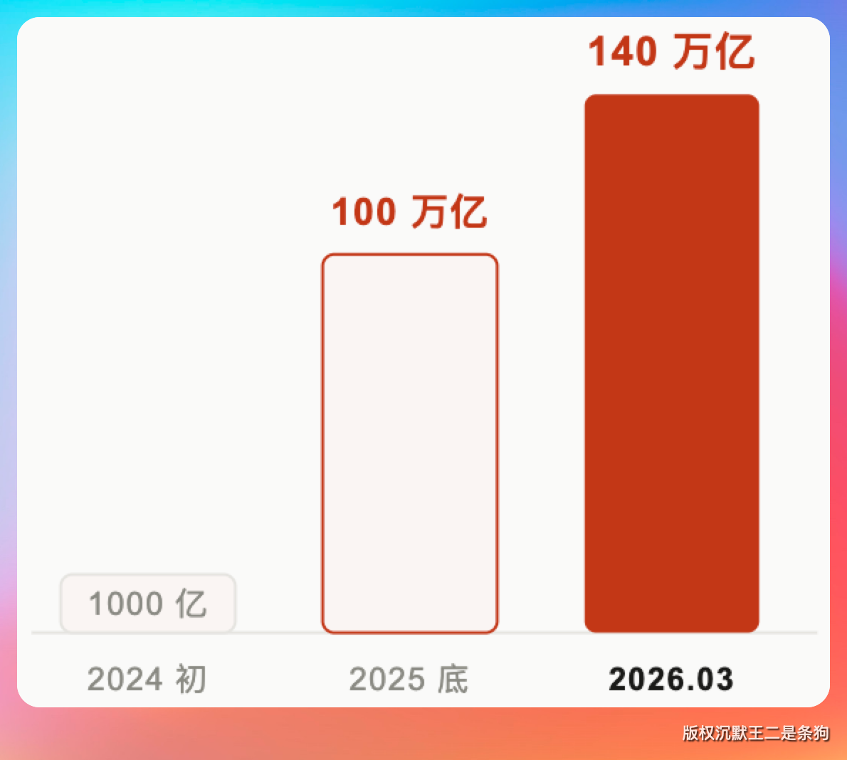 2026 年 3 月份来到了 140 万亿。