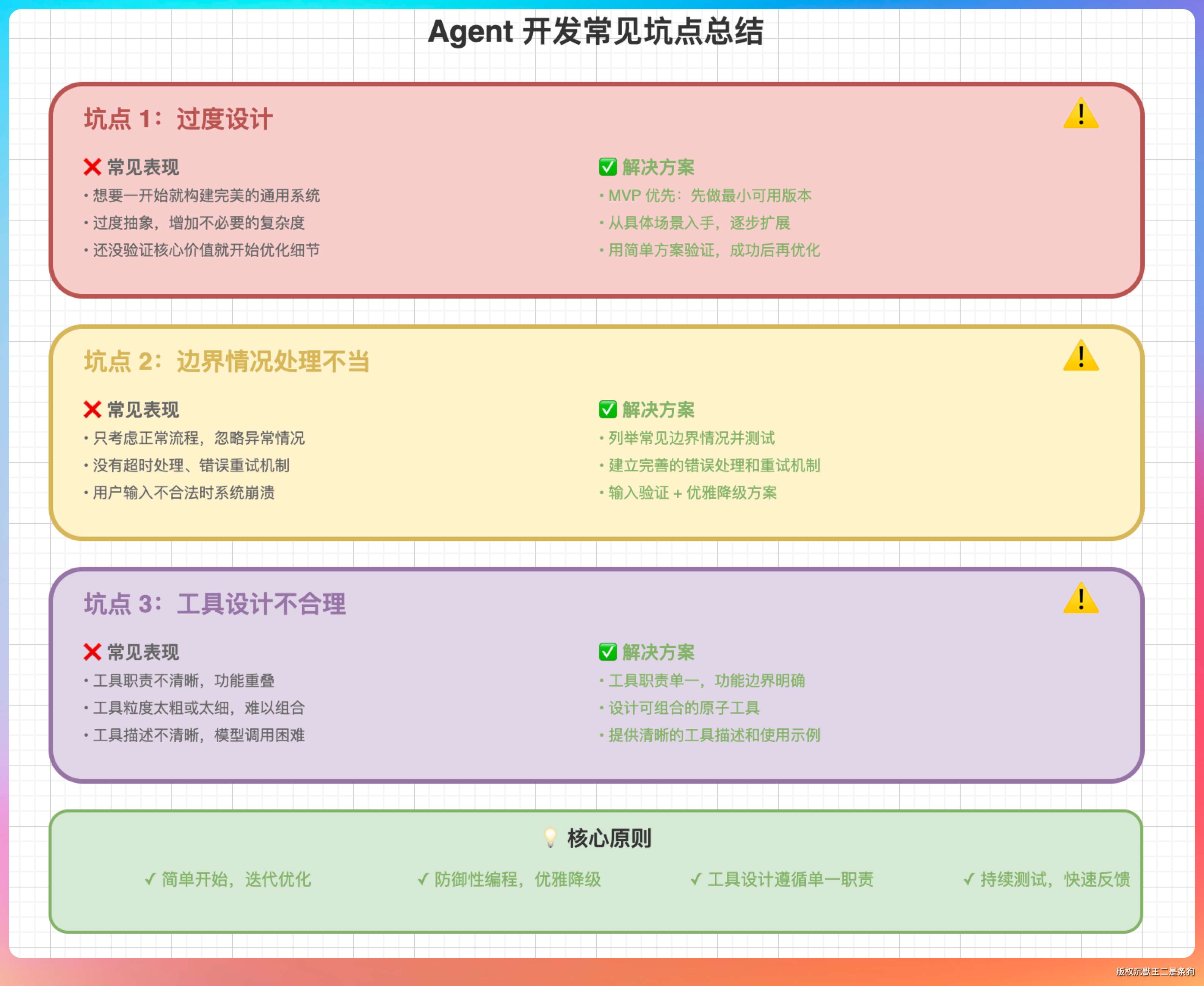 “讲真,Agent 开发最怕的就是贪多求全。一上来就想做个完整的 Claude Code,结果往往是半途而废。从简单开始,逐步迭代,才是正确的姿势。”