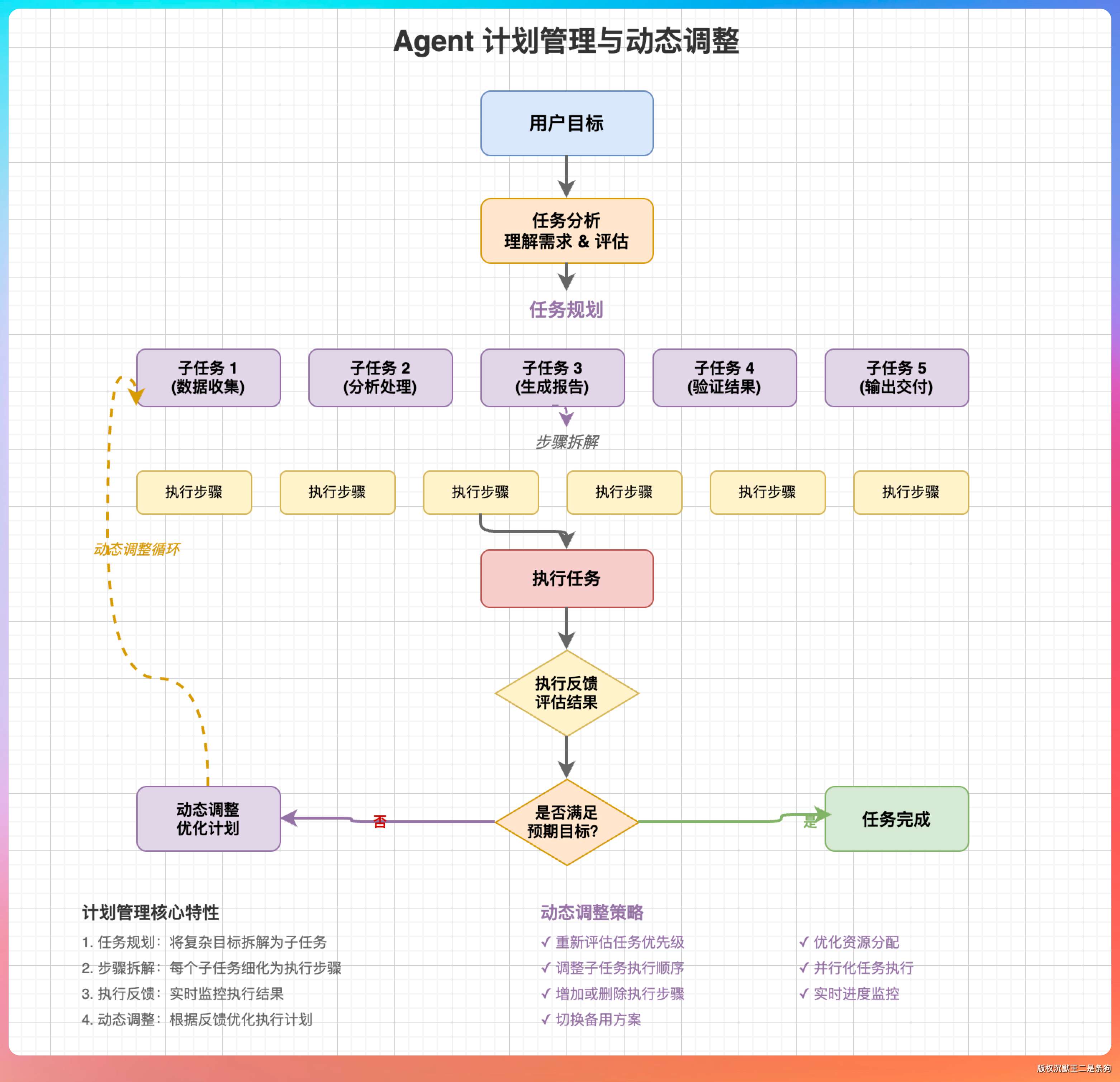 “区别在于‘动态性’。”我说,“普通任务队列是静态的,任务一旦入队就不会变。计划管理是动态的,模型可以根据执行反馈随时调整计划。”