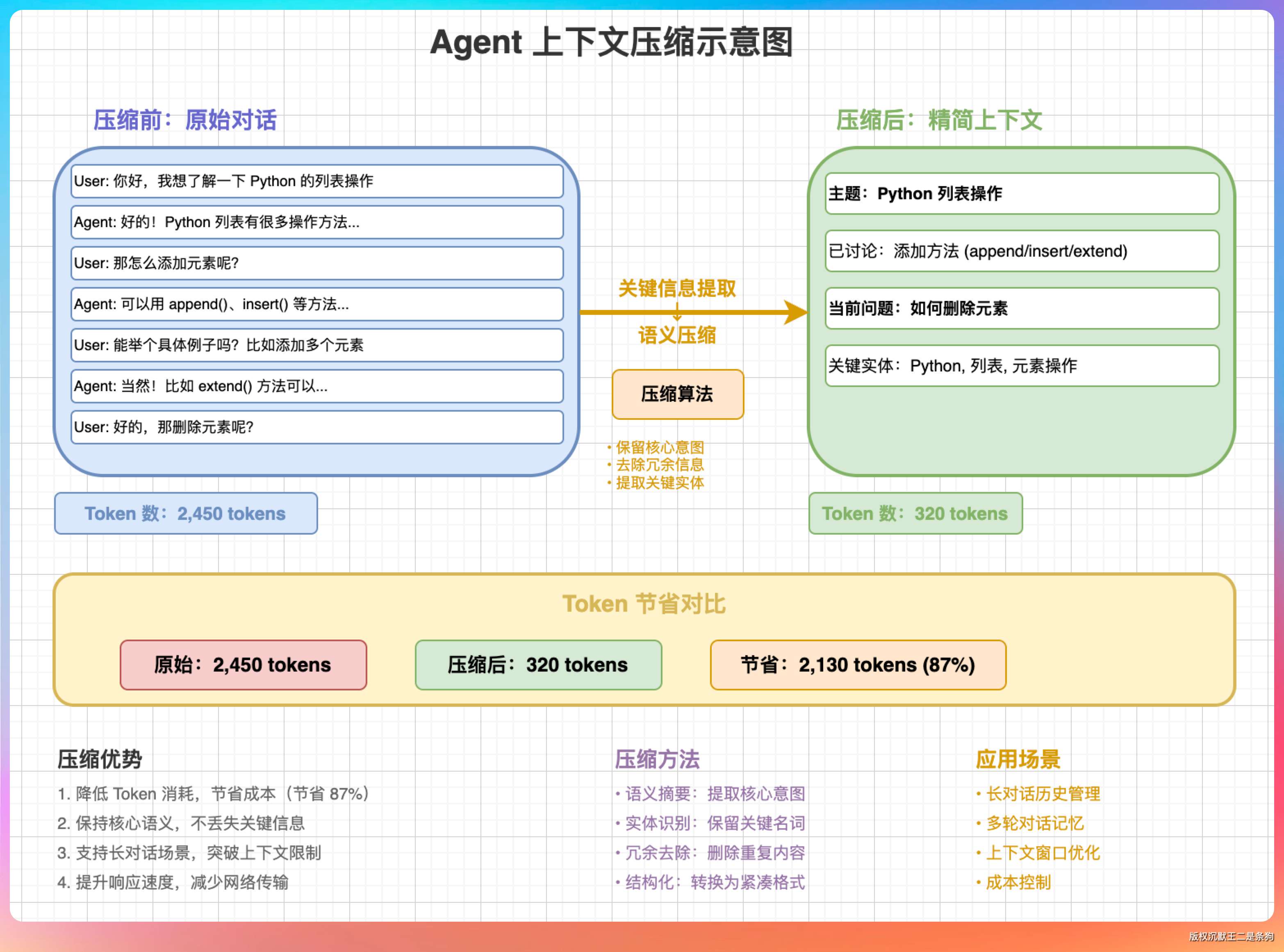 “压缩的目的是在有限的上下文窗口里,保留最有价值的信息。这不是简单的截断,而是一个信息提炼的过程。”