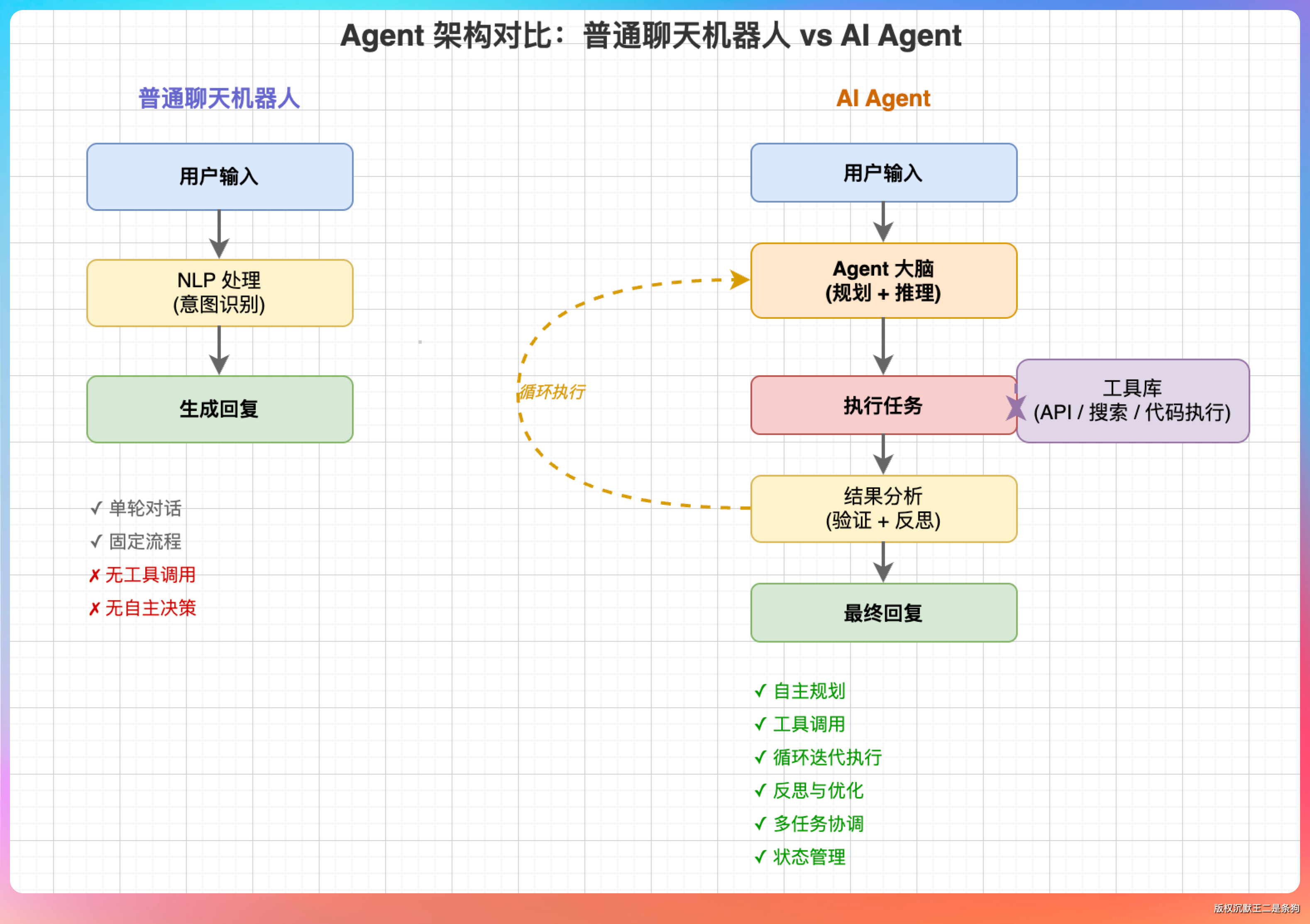 老王的第一个问题很直接:“你说说,Agent 和普通的聊天机器人有什么区别?”