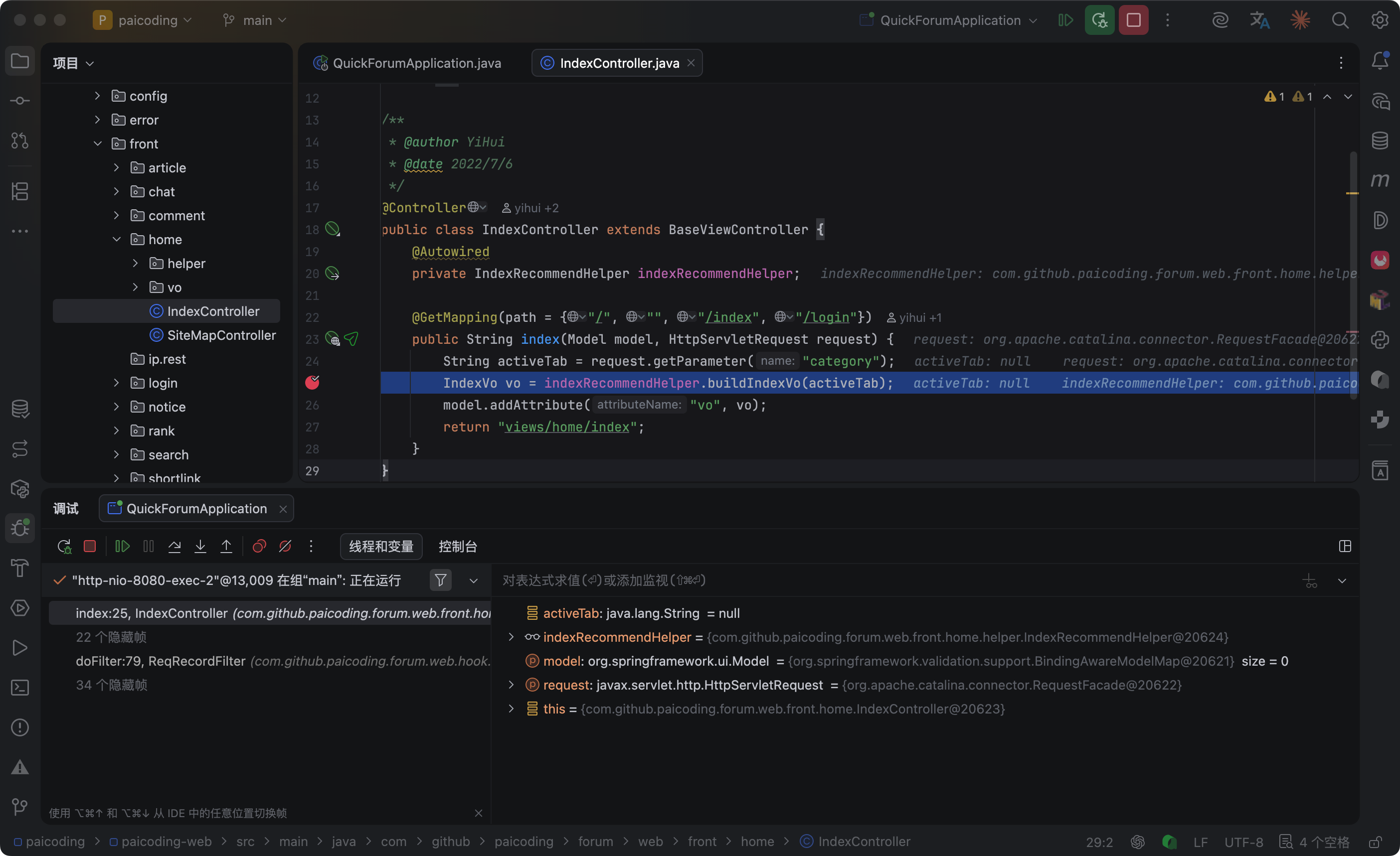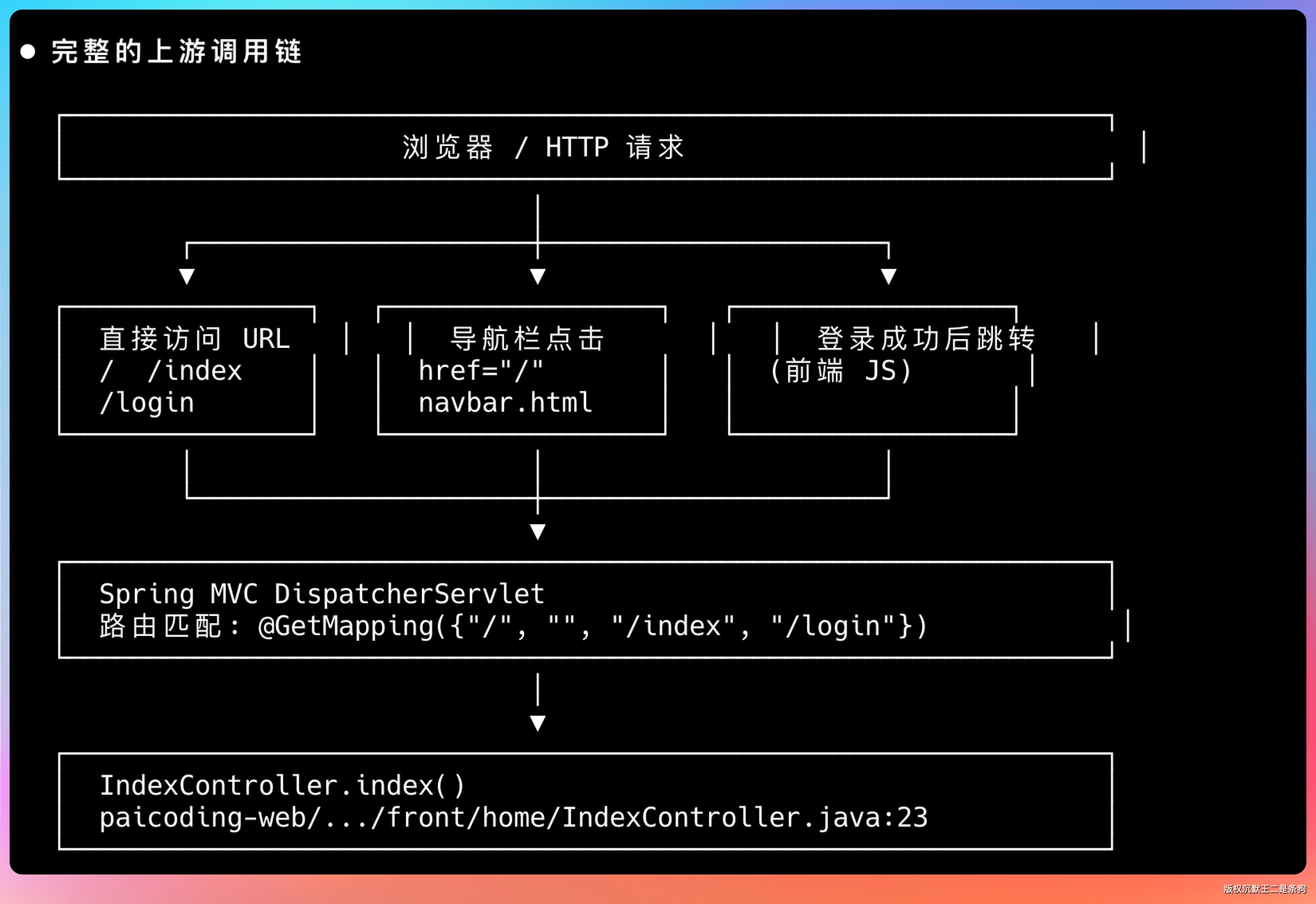 IndexController.index() 上游调用链,这是一个 HTTP 入口方法,没有代码层面的直接调用者。调用来源:URL:/、/index 或 /login。