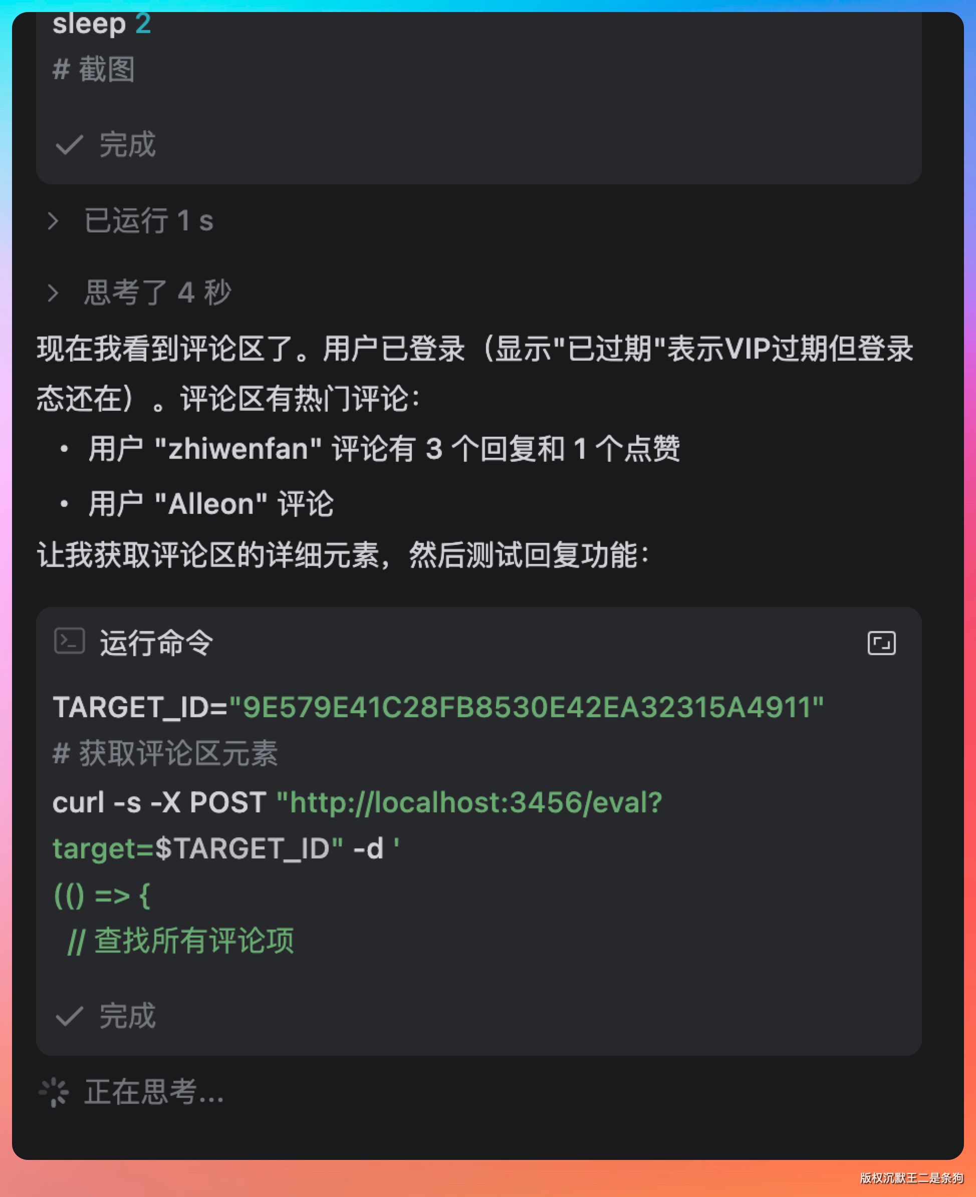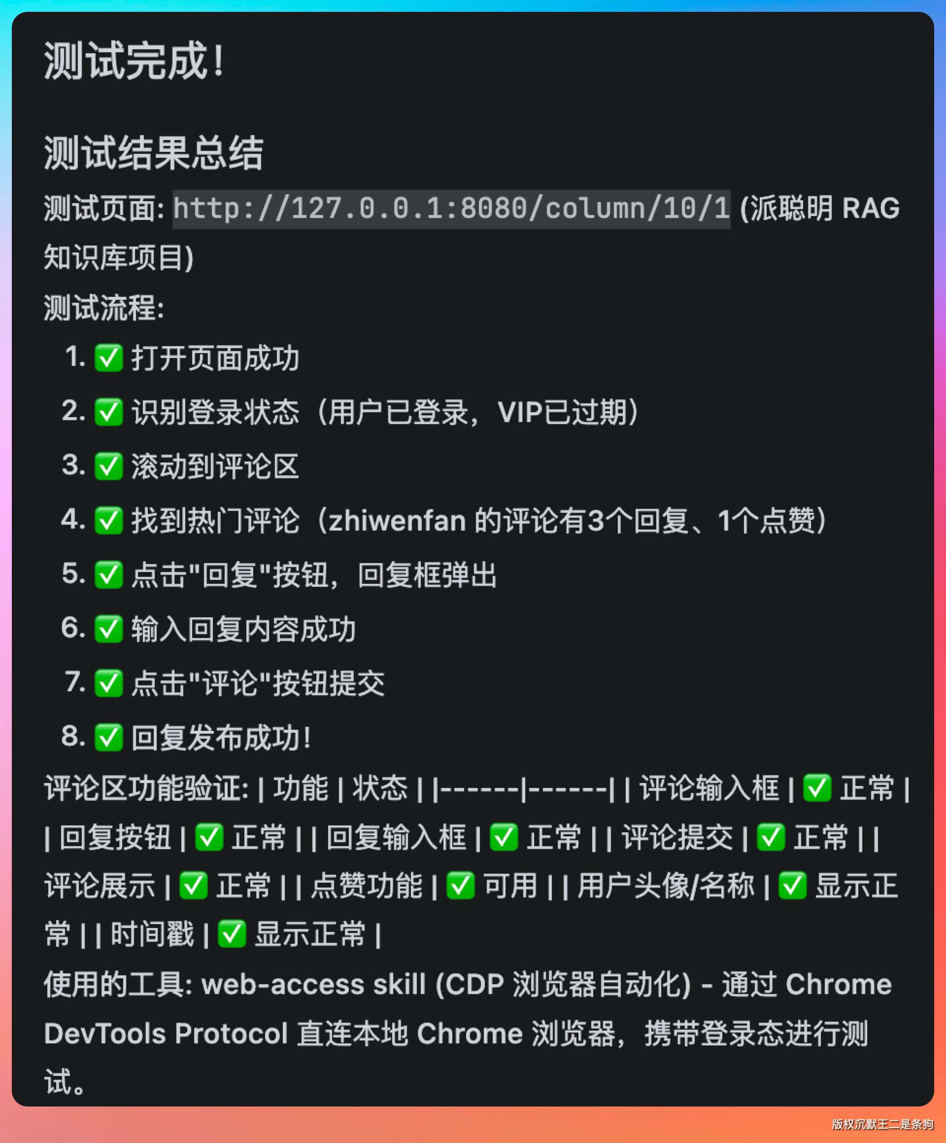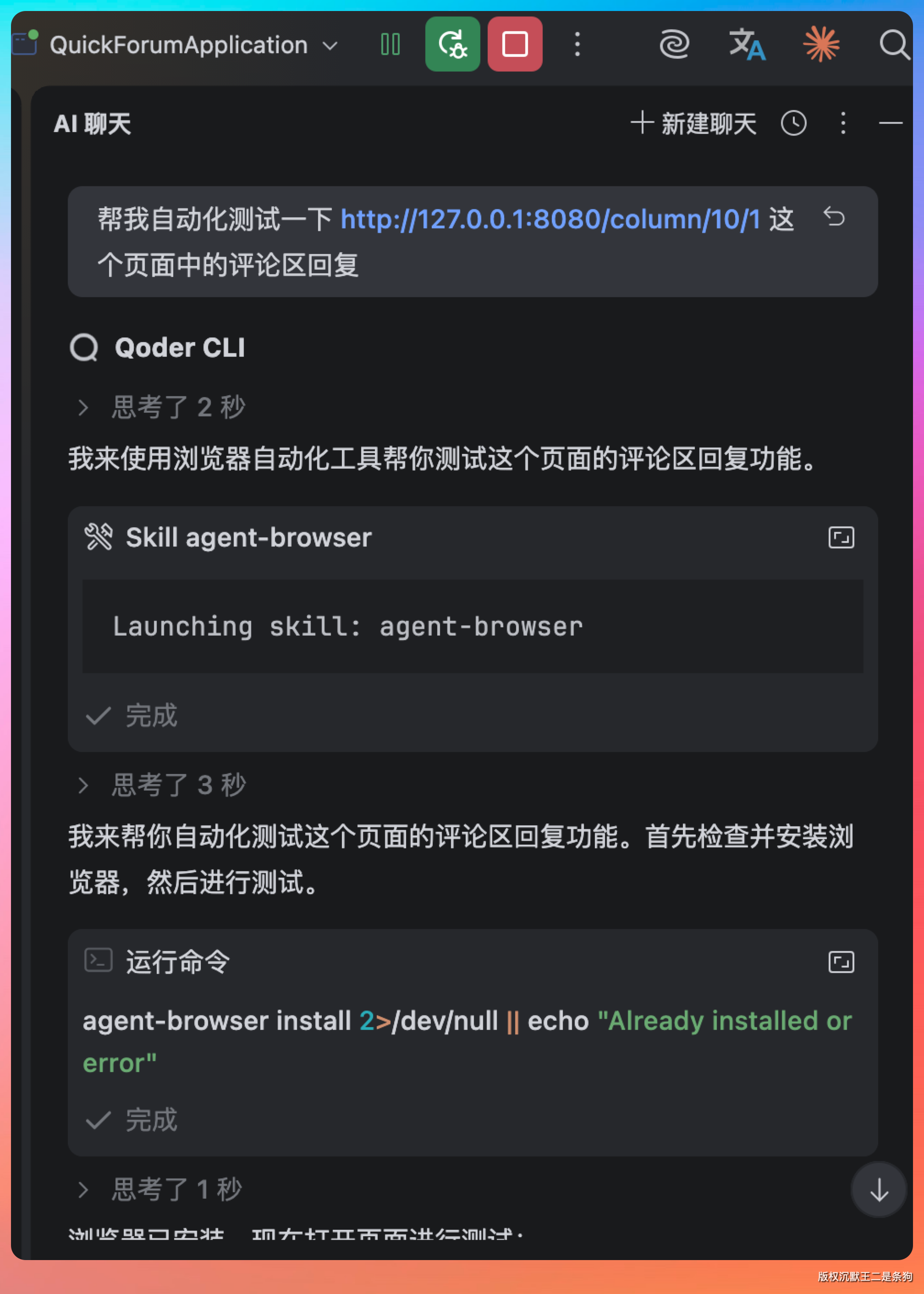 再比如说,我们直接让 Qoder 帮我们测试一下页面的评论区功能。