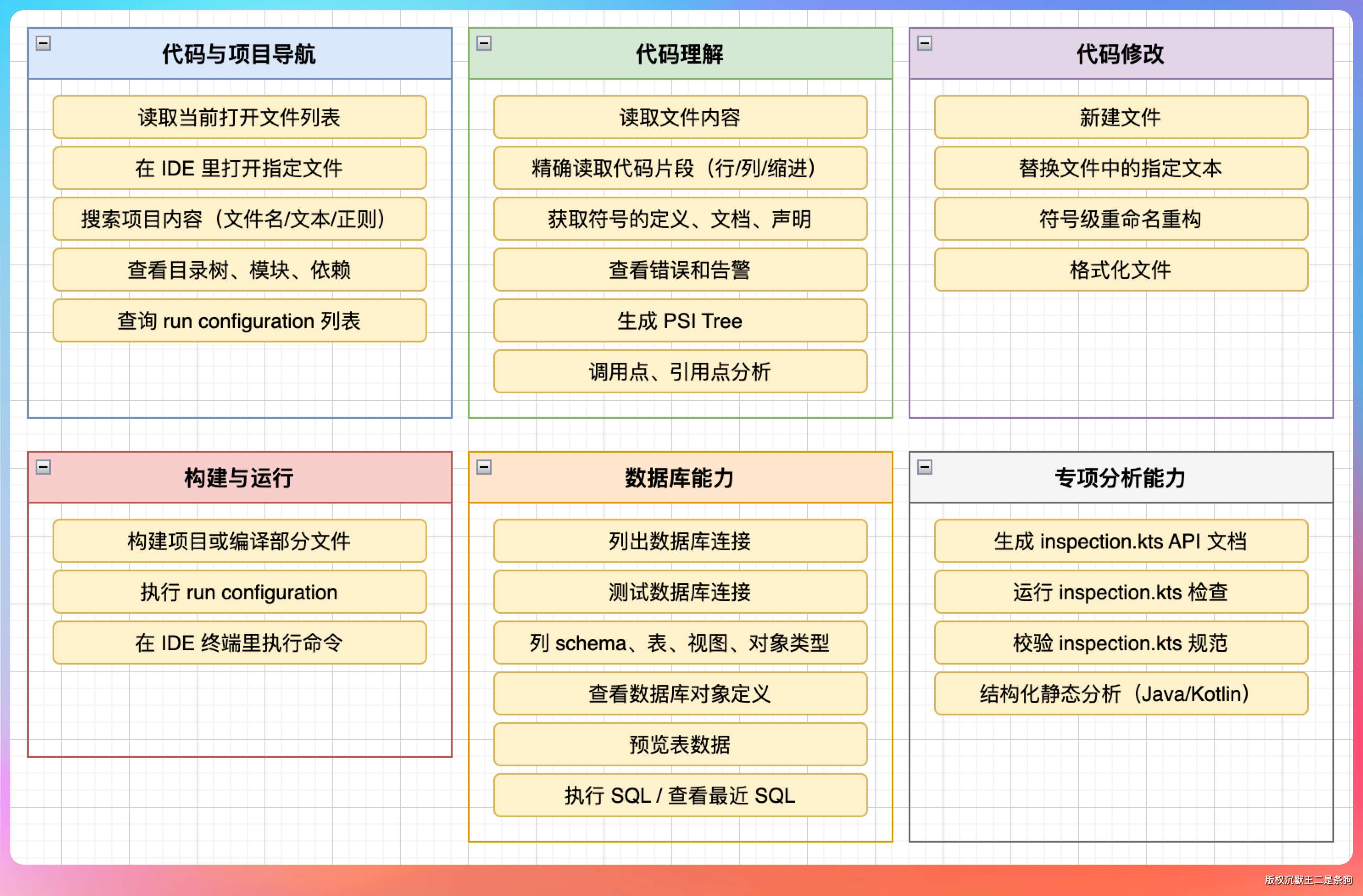 换个角度理解,以前 IDE 的杀手级能力——智能重构、语义搜索、类型推导、依赖分析,全都被锁在 IDE 的图形界面里。
