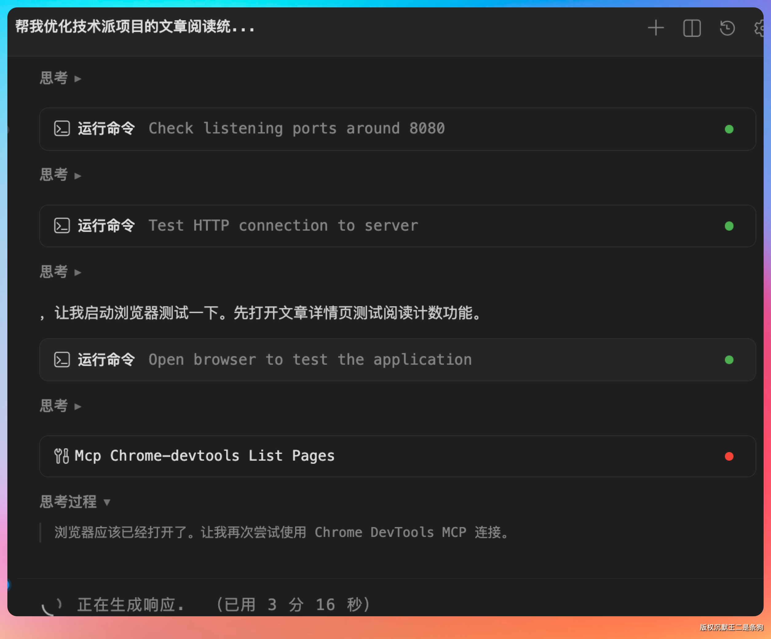 这些细节我自己写可能都会遗漏,但 Agent 都考虑到了。