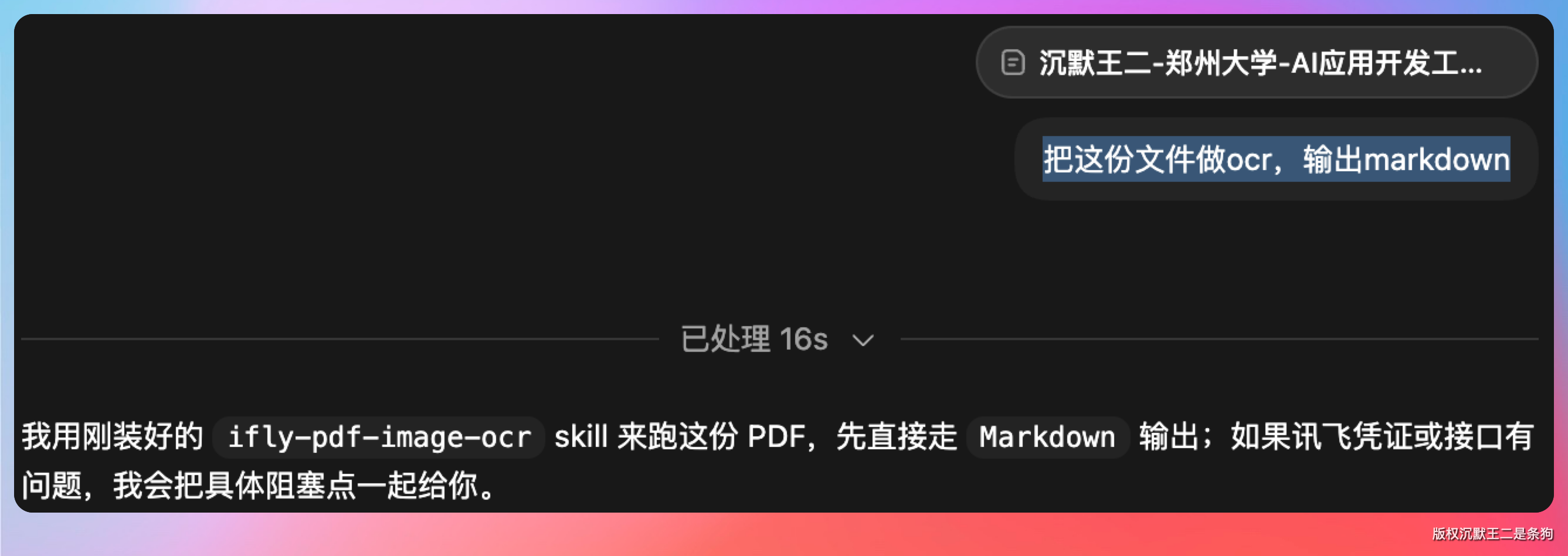 之后 Agent 就能自动识别 SkillHub 里的技能包,就像使用官方 Skills 一样方便。