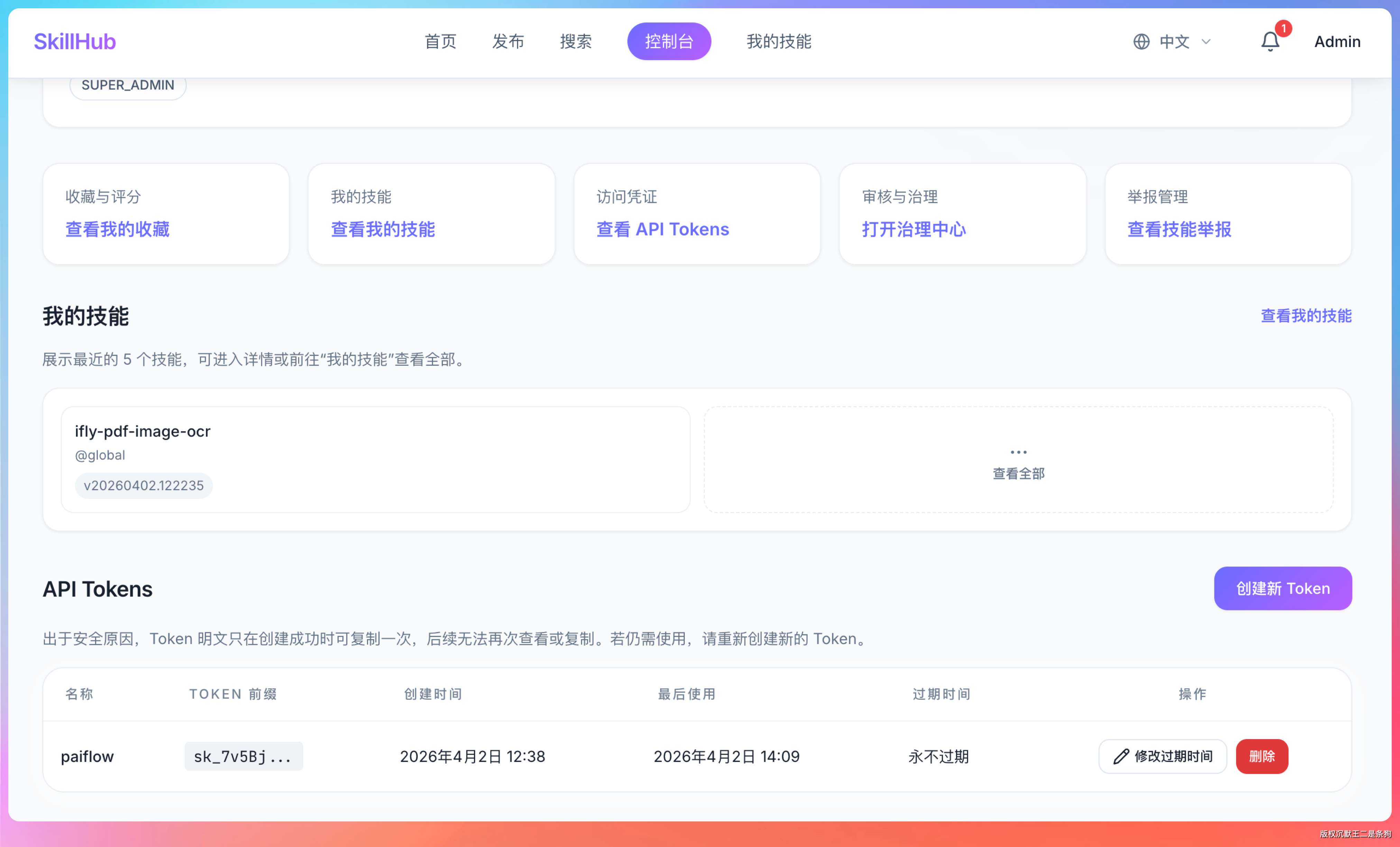 完美,到此为止,我们算是用SkillHub做了一个完整的Skills发布、校审、安装、使用。