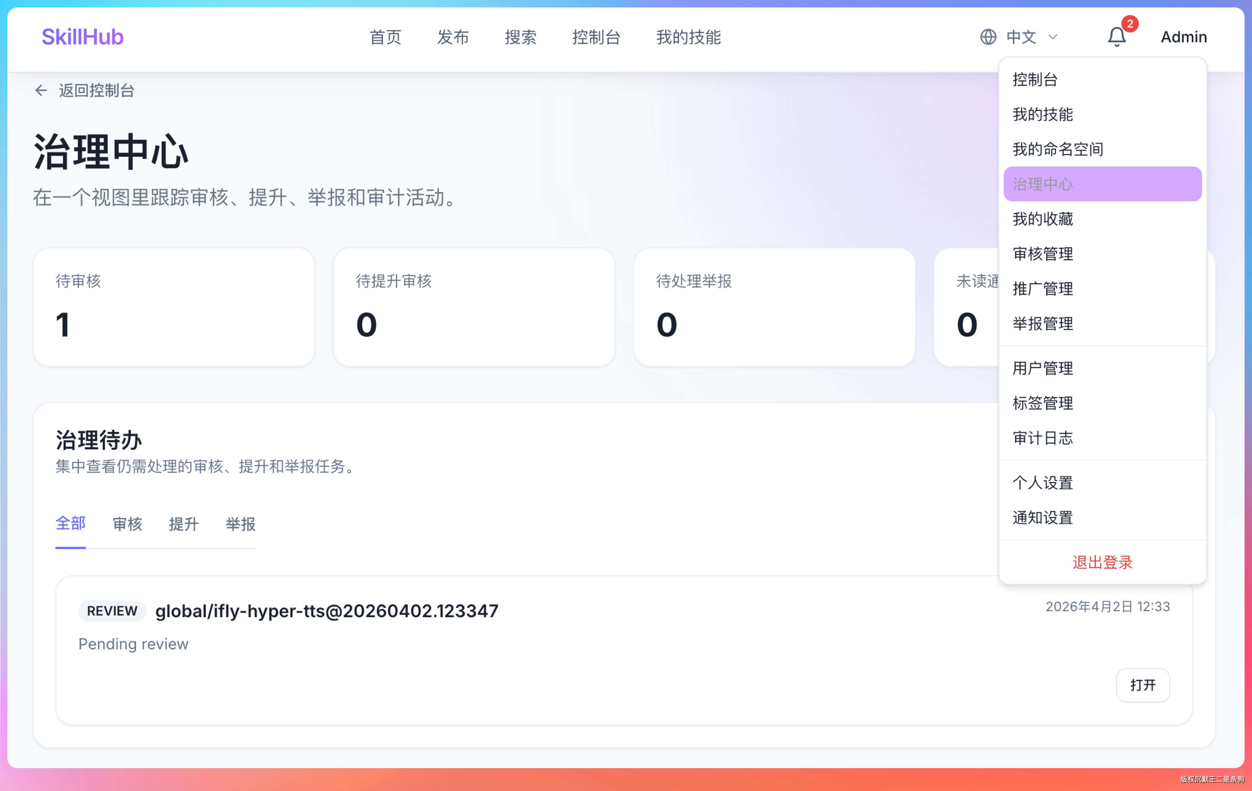 这个审核机制对企业来说太重要了。没有它,内部技能库很快就会变成垃圾堆,充斥着各种质量参差不齐的技能包,最终无人敢用。