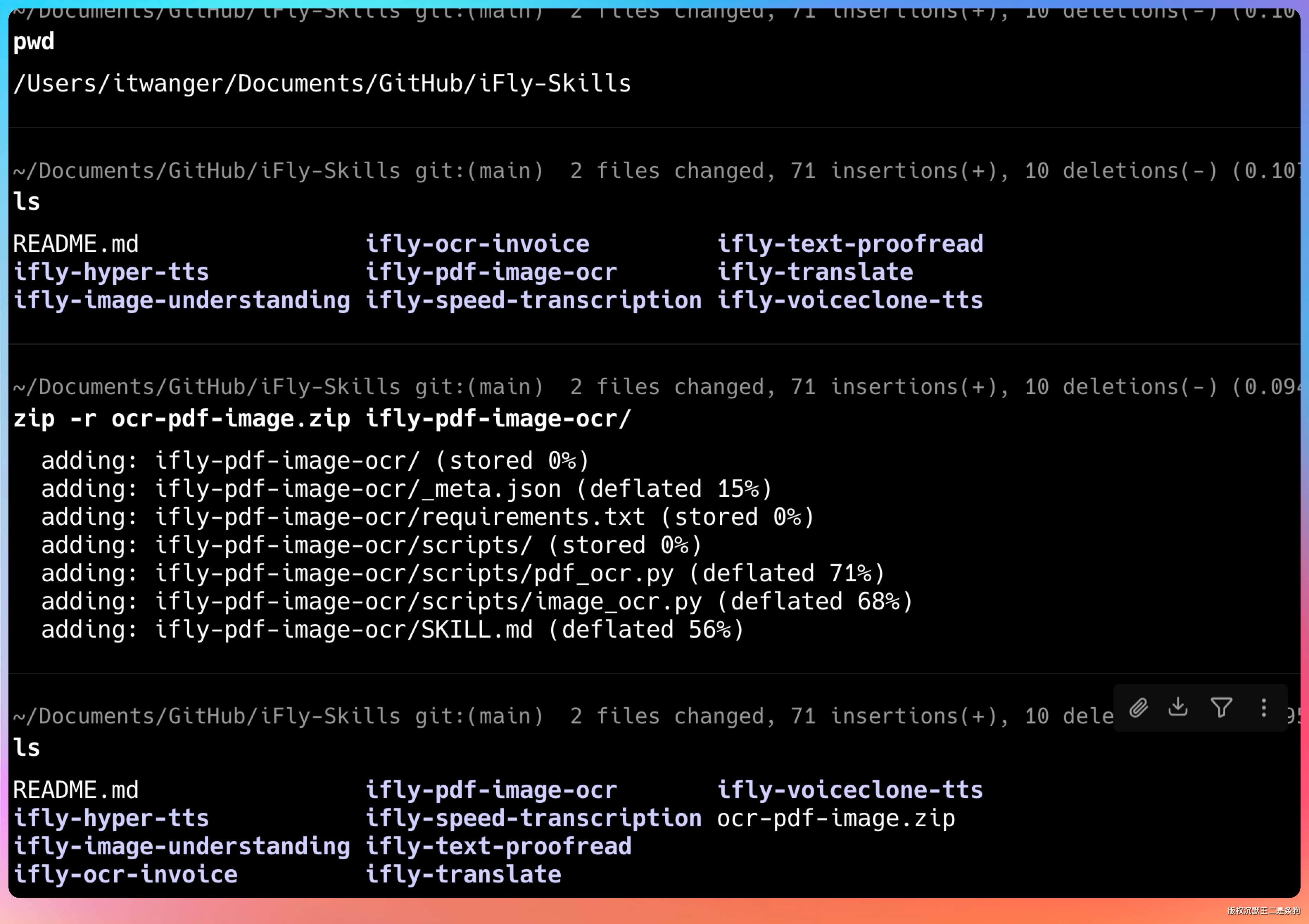 然后把 ifly-pdf-image-ocr 压缩成zip 文件。