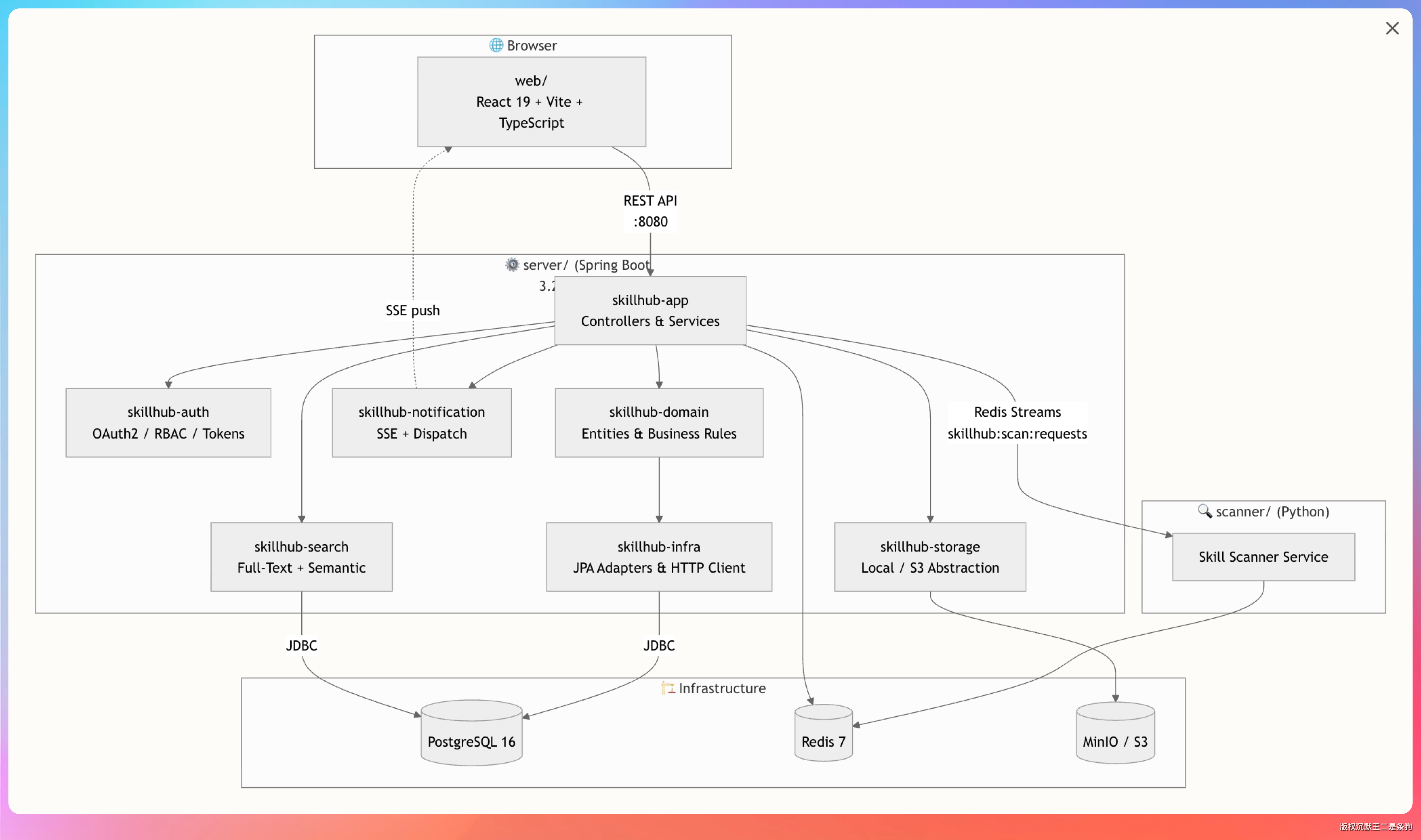 翻了一下源码,SkillHub 的技术选型很扎实。
