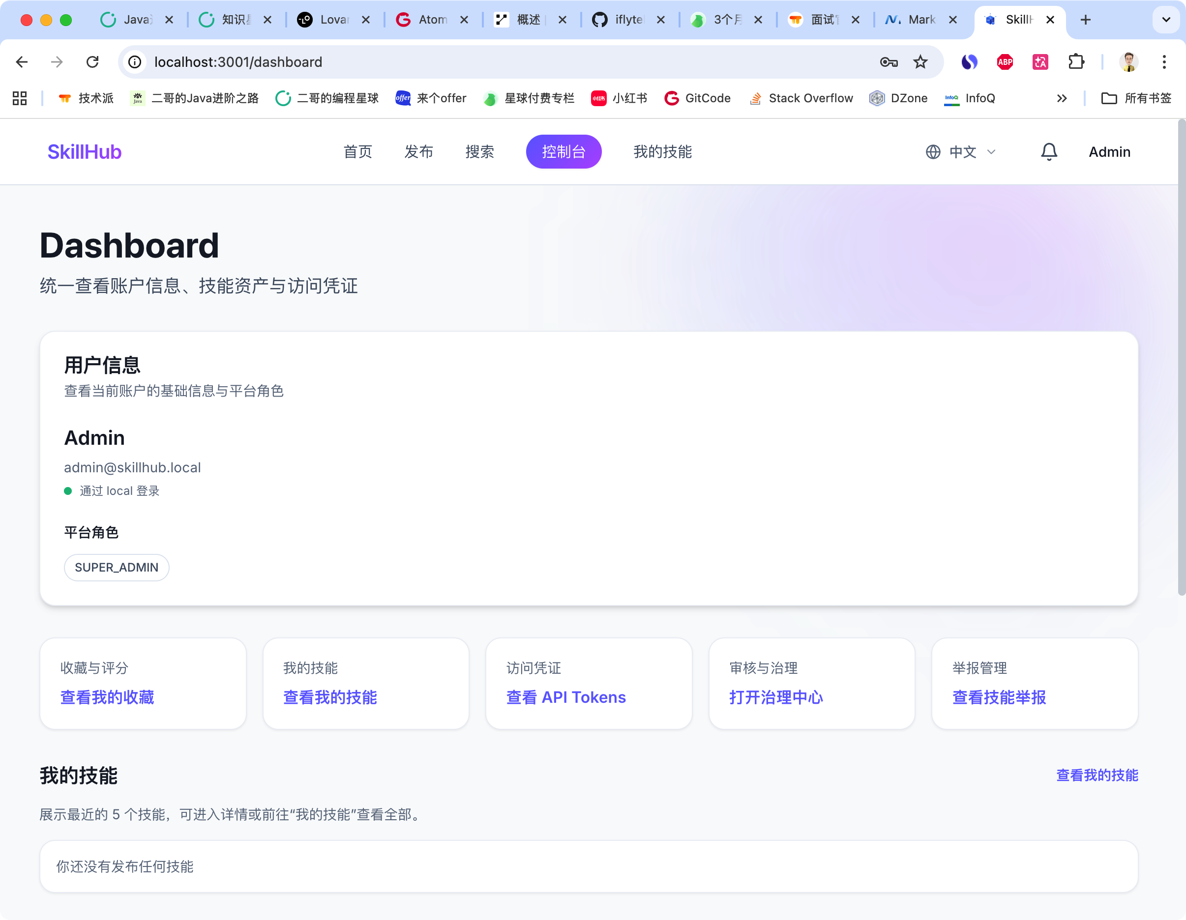 好,给自己鼓个掌吧,我们的 SkillHub 到此就部署成功了。