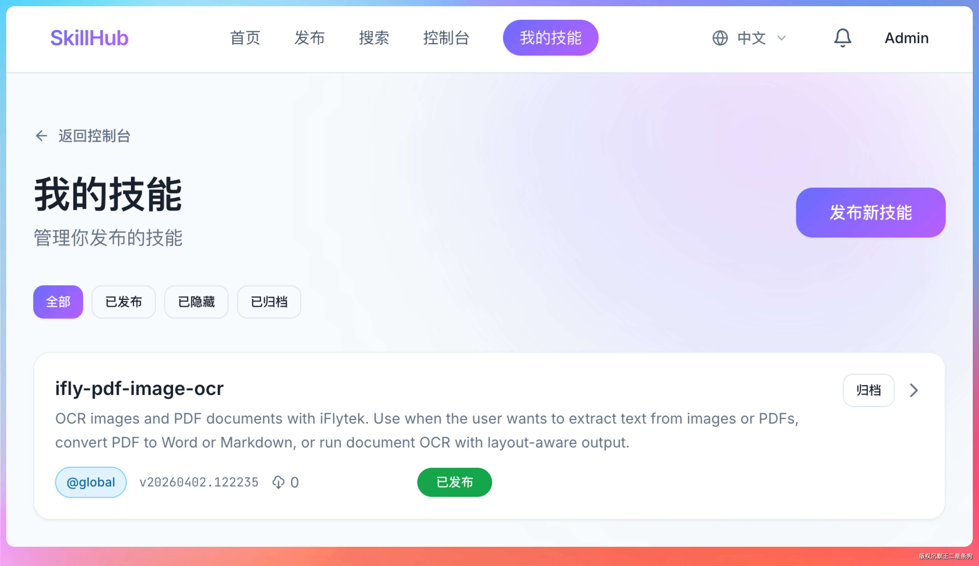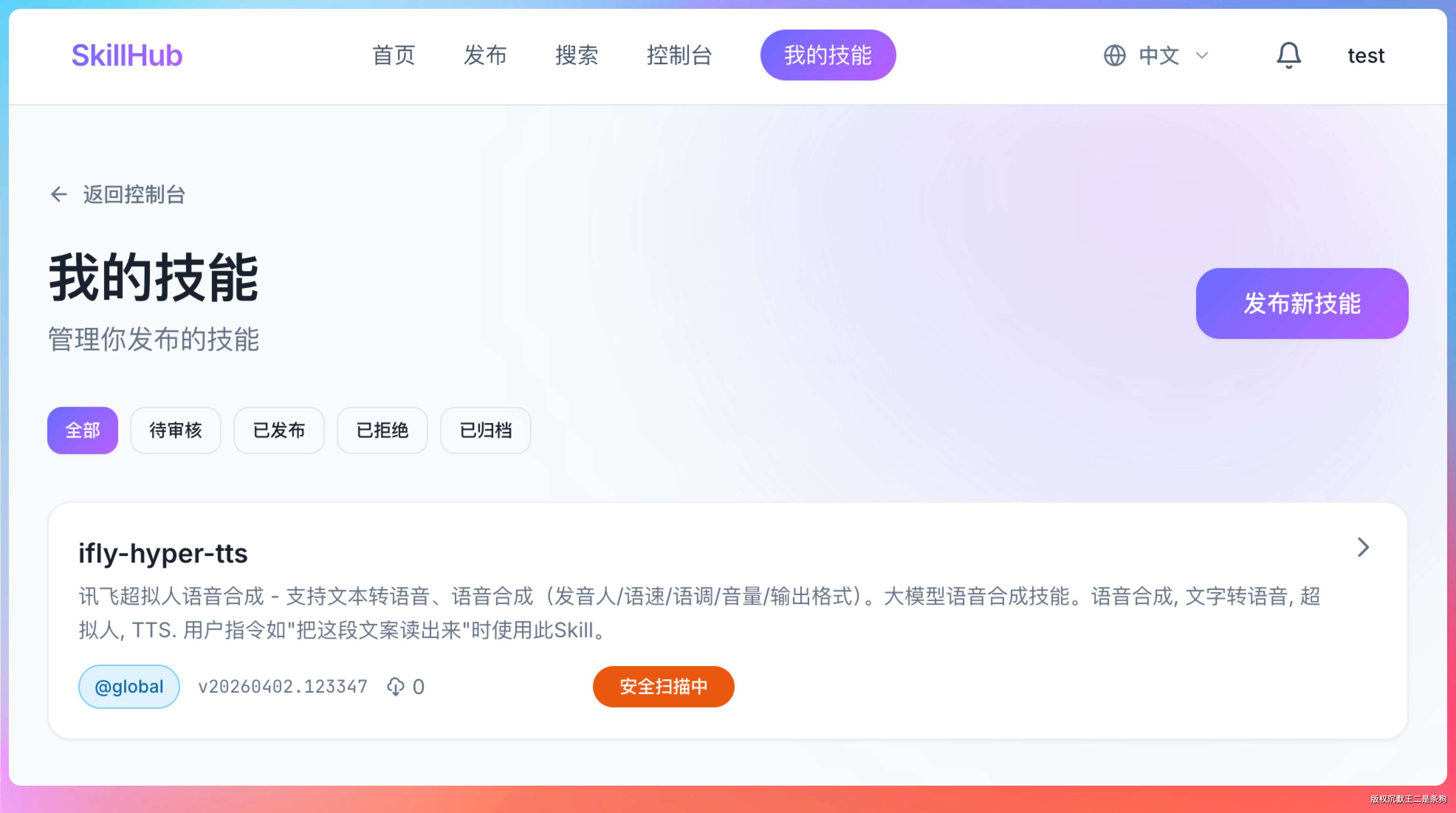 我之前就有做这样一个实战项目的打算,看来可以基于 SkillHub 进行二开了,哈哈。科大讯飞牛的,无需多言。