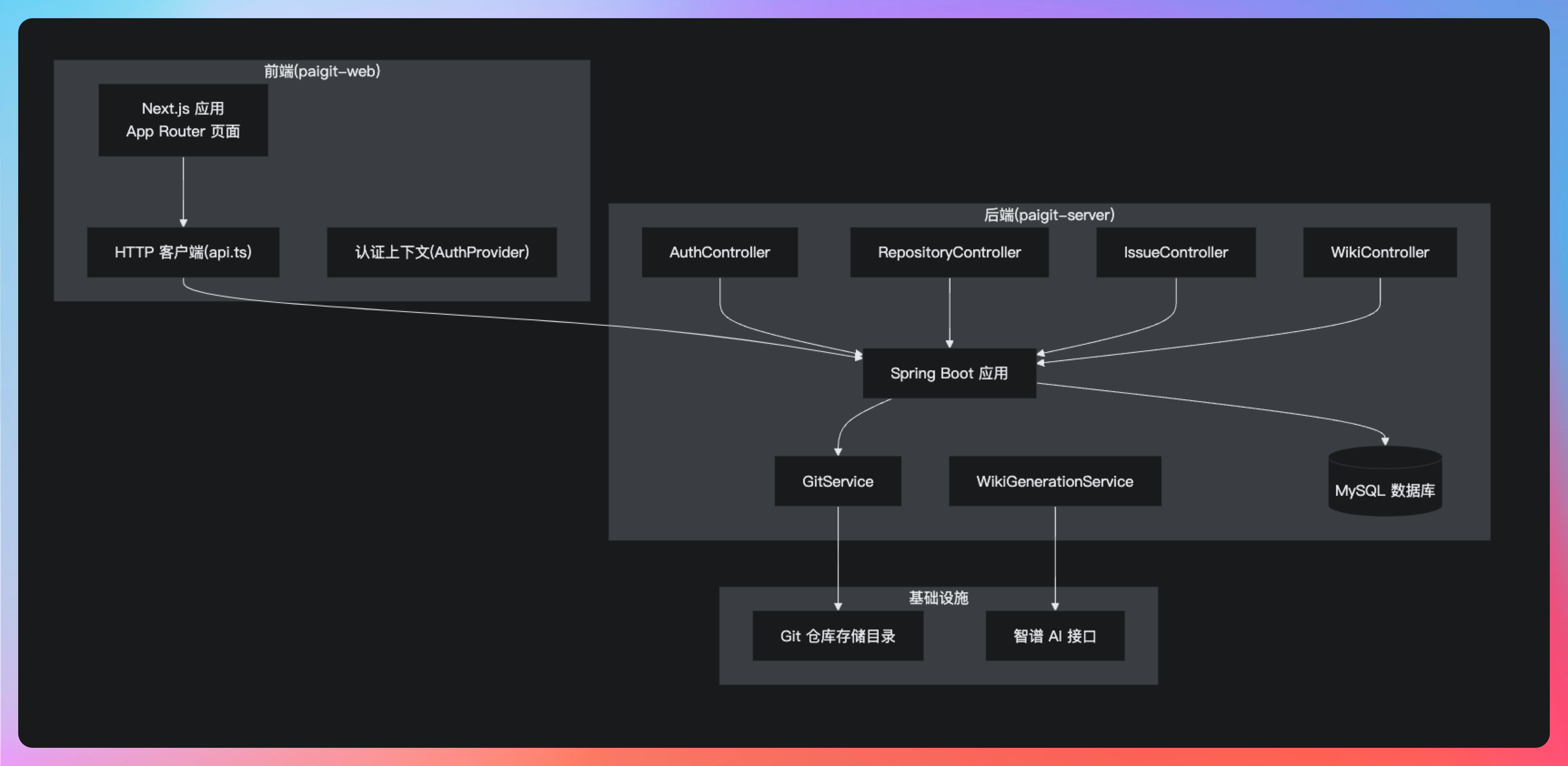 我手头刚好有一个 PaiGit 项目,一个类似 GitCode、GitHub、Gitee 的源码管理平台。目前功能包括仓库导入、Issue 管理、Wiki 生成等。