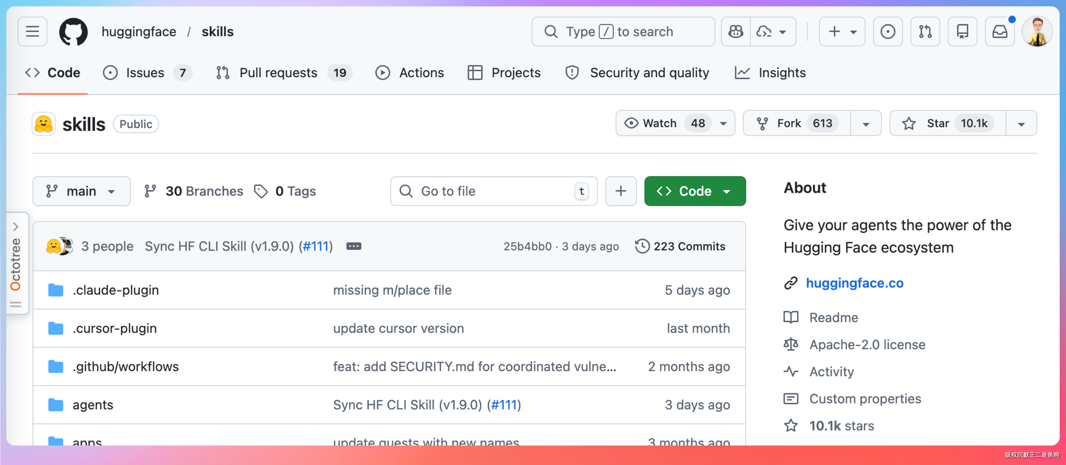 huggingface/skills(10k Star):HuggingFace 官方的 Skills 仓库,给 AI Agent 接入 HuggingFace 生态的能力。包括模型调用、数据集下载、Space 部署等功能,全部以 Skill 形式组织。