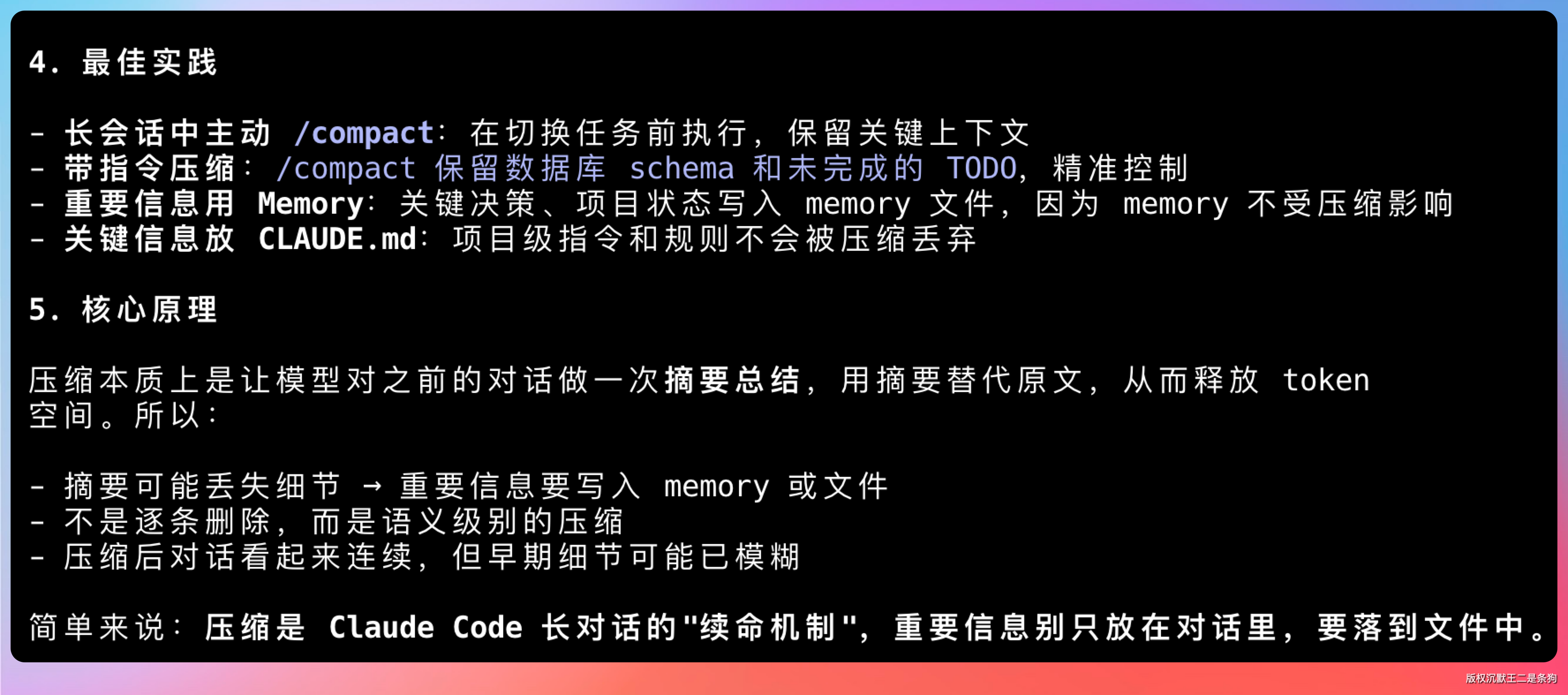 这方面,还得是 Claude Code,上下文管理上有「精心设计」——什么该保留、什么该丢弃、什么时候压缩,做得很好。