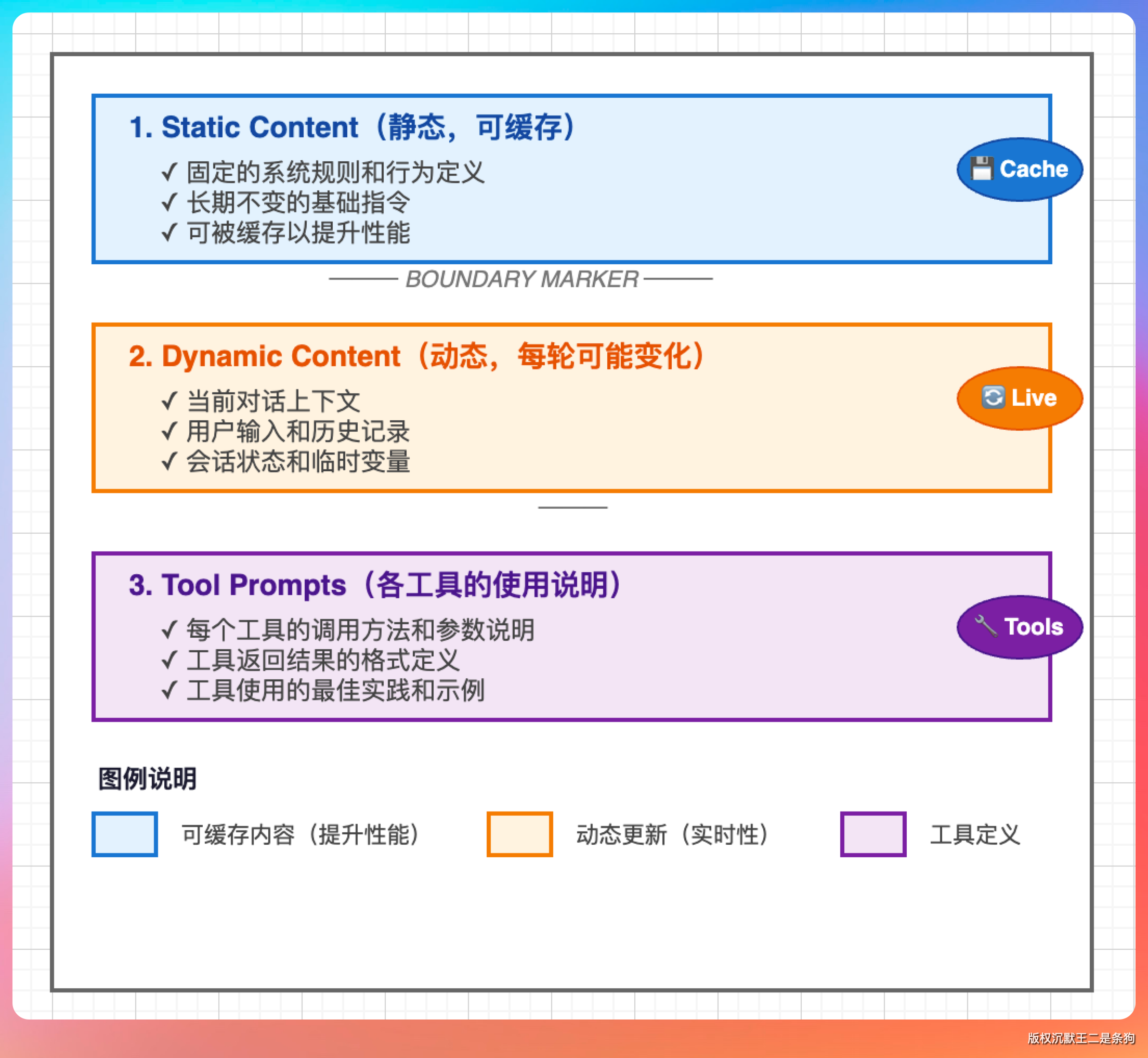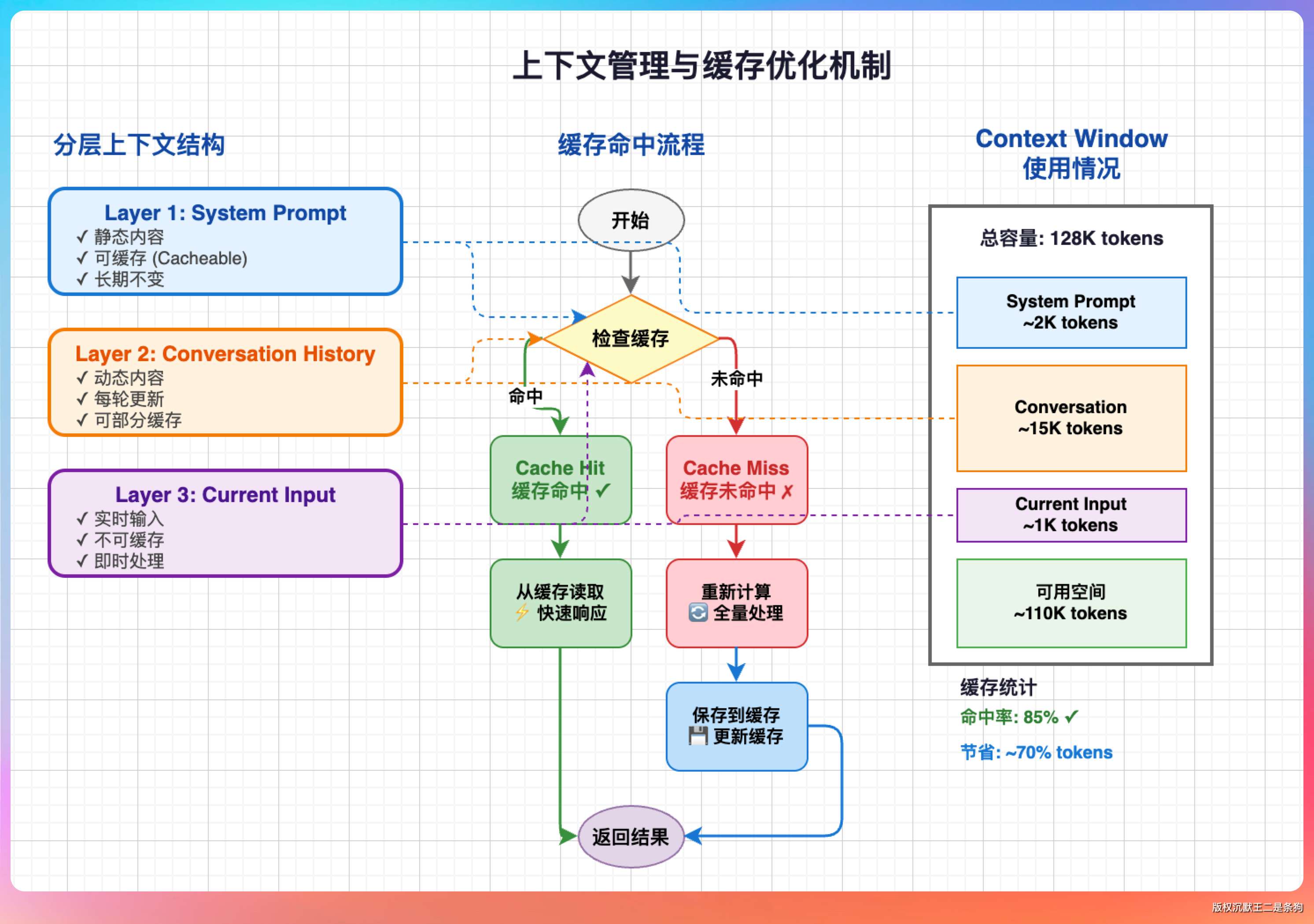 - 上下文工程——在有限的 token 预算里装进最有价值的信息,这是性能优化的核心战场;