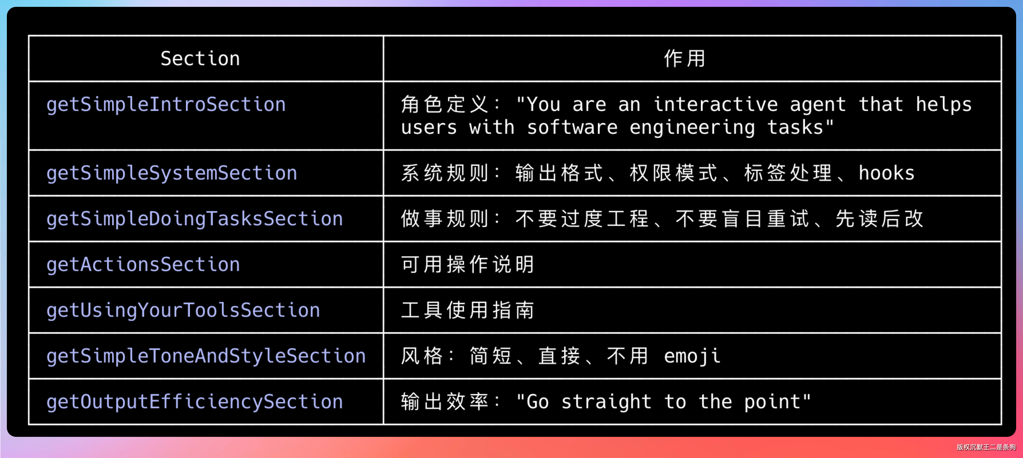 这就是为什么 Claude Code 不会乱来——每一个行为边界都在 System Prompt 里写死了。