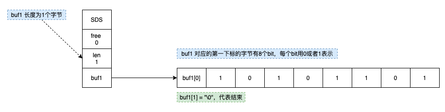 举个具体例子:执行 SETBIT mykey 7 1,Redis 会把 key 为 mykey 的字节数组的第 7 个 bit 设置为 1。底层就是一次简单的位运算。