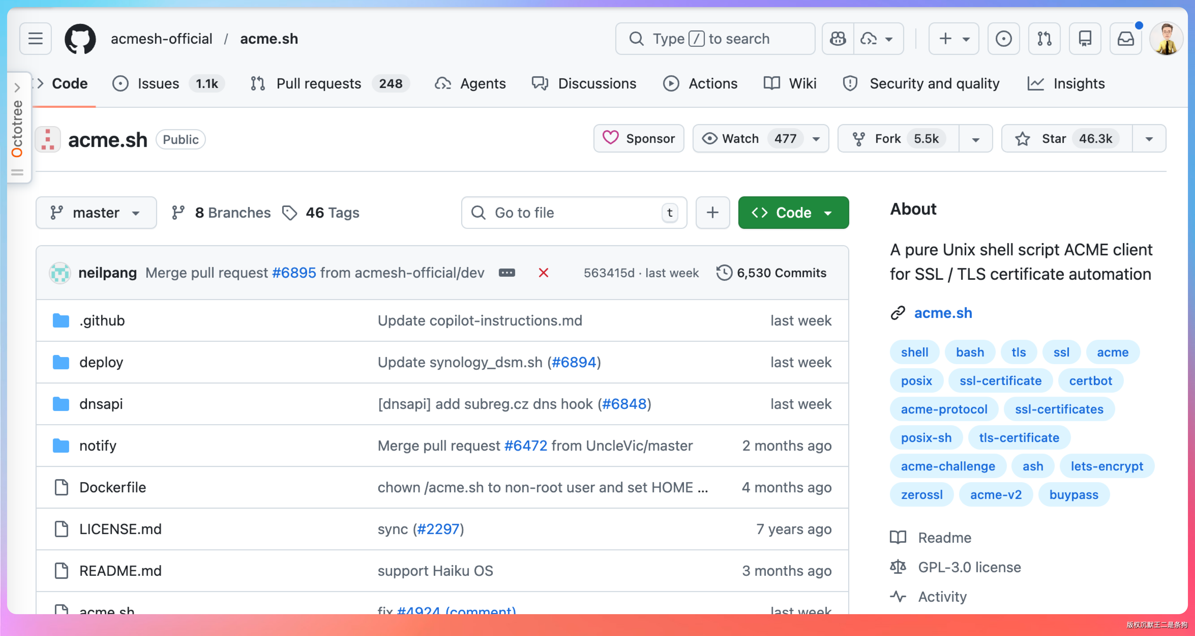 acme.sh 是一个纯 shell 脚本写的 ACME 协议客户端,不依赖 Python,不依赖 Go,一个 bash 就能跑。